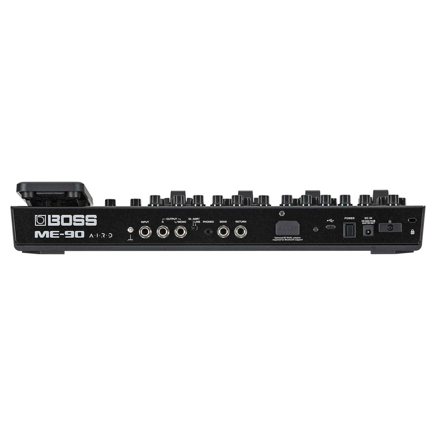 Das ME-90 bietet 7 Effektkategorien mit zahlreichen Effekten aus dem Topmodell GT-1000 wie Overdrives, Distortion-Effekte, Pitch/Mod-Effekte, Delays sowie Reverb-Effekte. Die insgesamt 60 Effekttypen lassen sich über das Boss Tone Studio um über 20 Effekte erweitern. Über den Send/Return-Loop können externe Pedale angeschlossen werden.