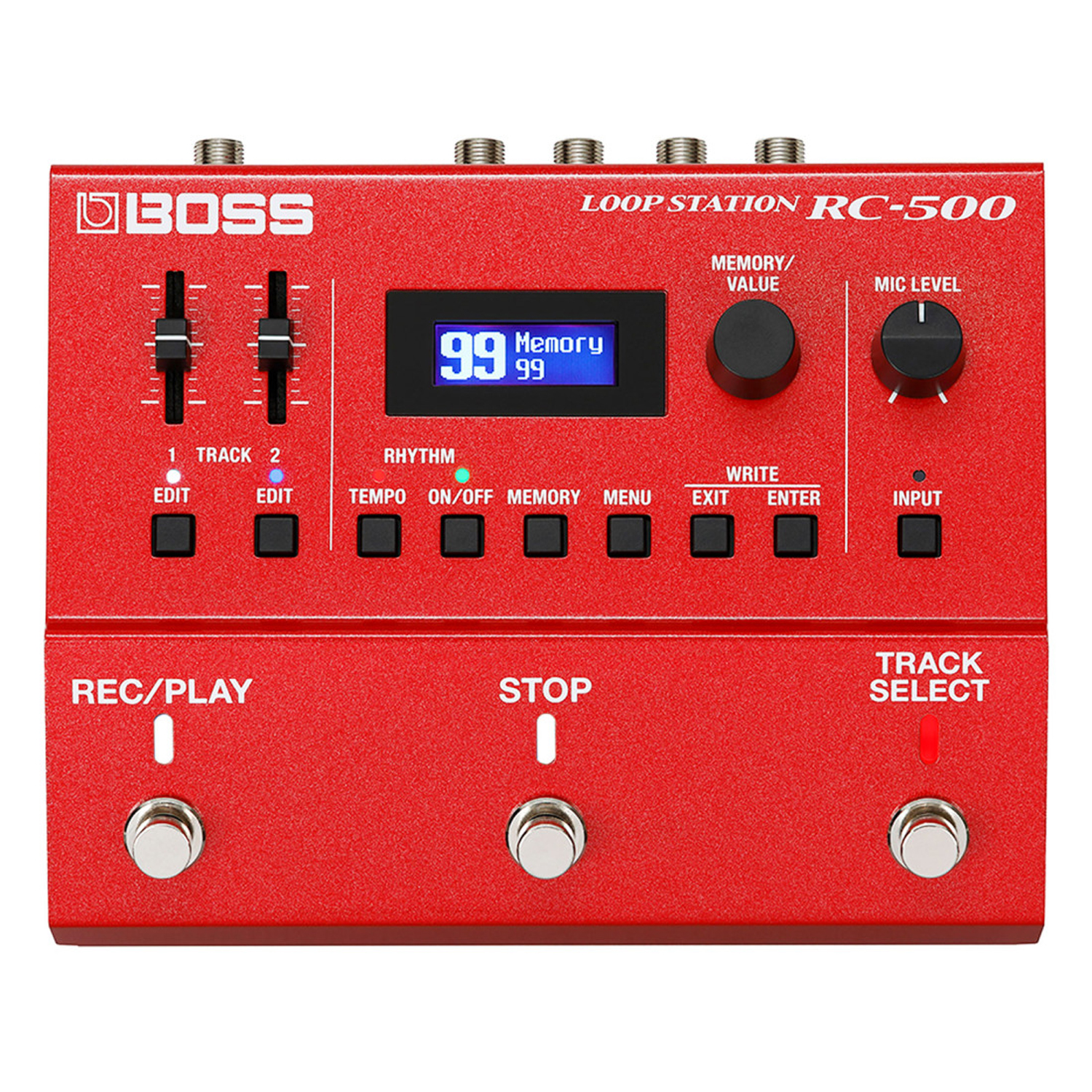 Das mehrfarbige LCD Display gibt Auskunft über Loop-Status, und ermöglicht das Bearbeiten von Parametern. Mono/Stereo-Eingänge sorgen für eine einfache Integration ins Pedalboard. Der RC-500 verfügt über MIDI Ein/Ausgang im Miniklinken-Format für weiterführende Steuerungsmöglichkeiten. Das Speichern von Loops ist auf den 99 Speicherplätzen möglich sowie über USB als WAV File auf einem Computer.
