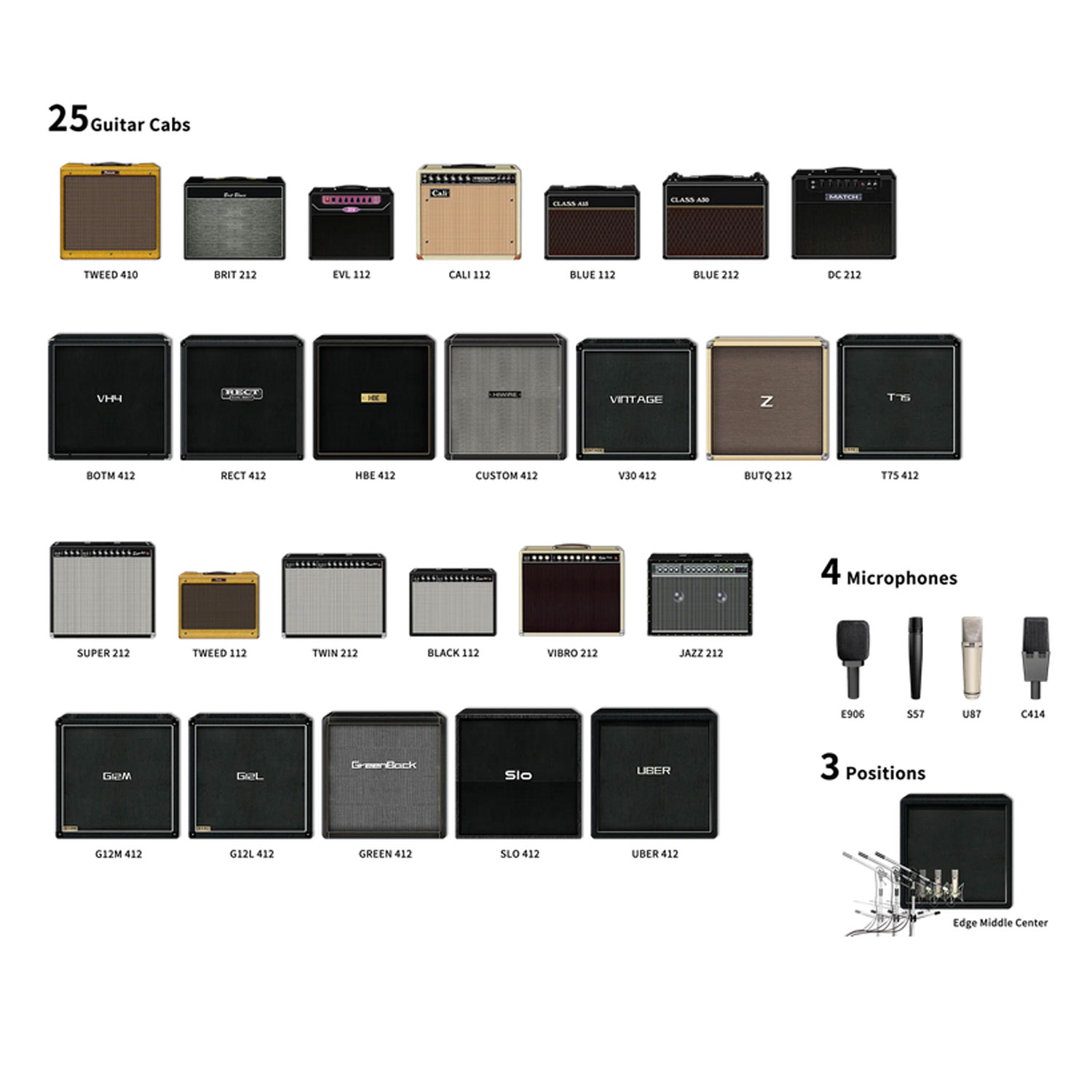 - 25 Cabinet Simulationen / 4 Mikrofon-Simulationen