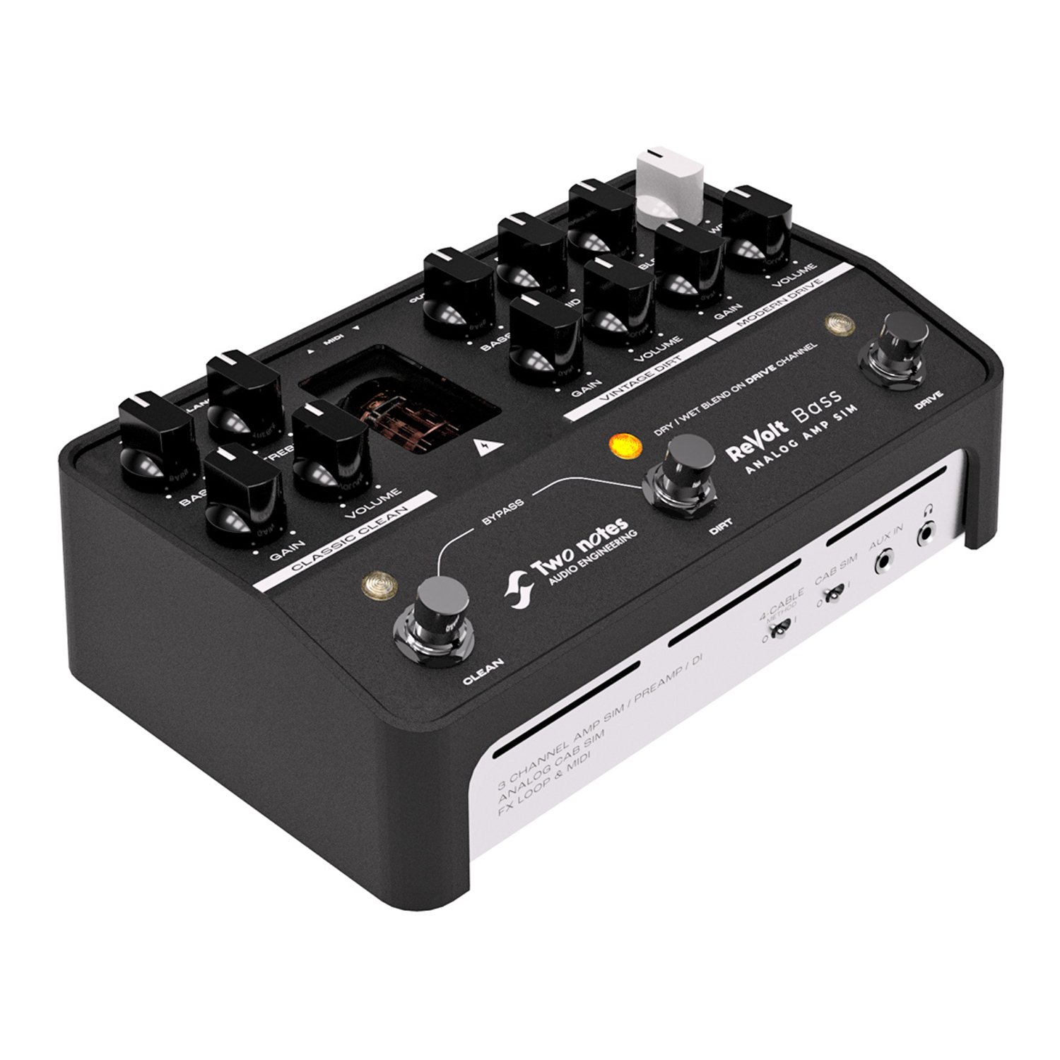 Two Notes ReVolt Bass ist eine analoge 3-Kanal-Amp-Simulation, die eine vielseitige Performance ermöglicht.