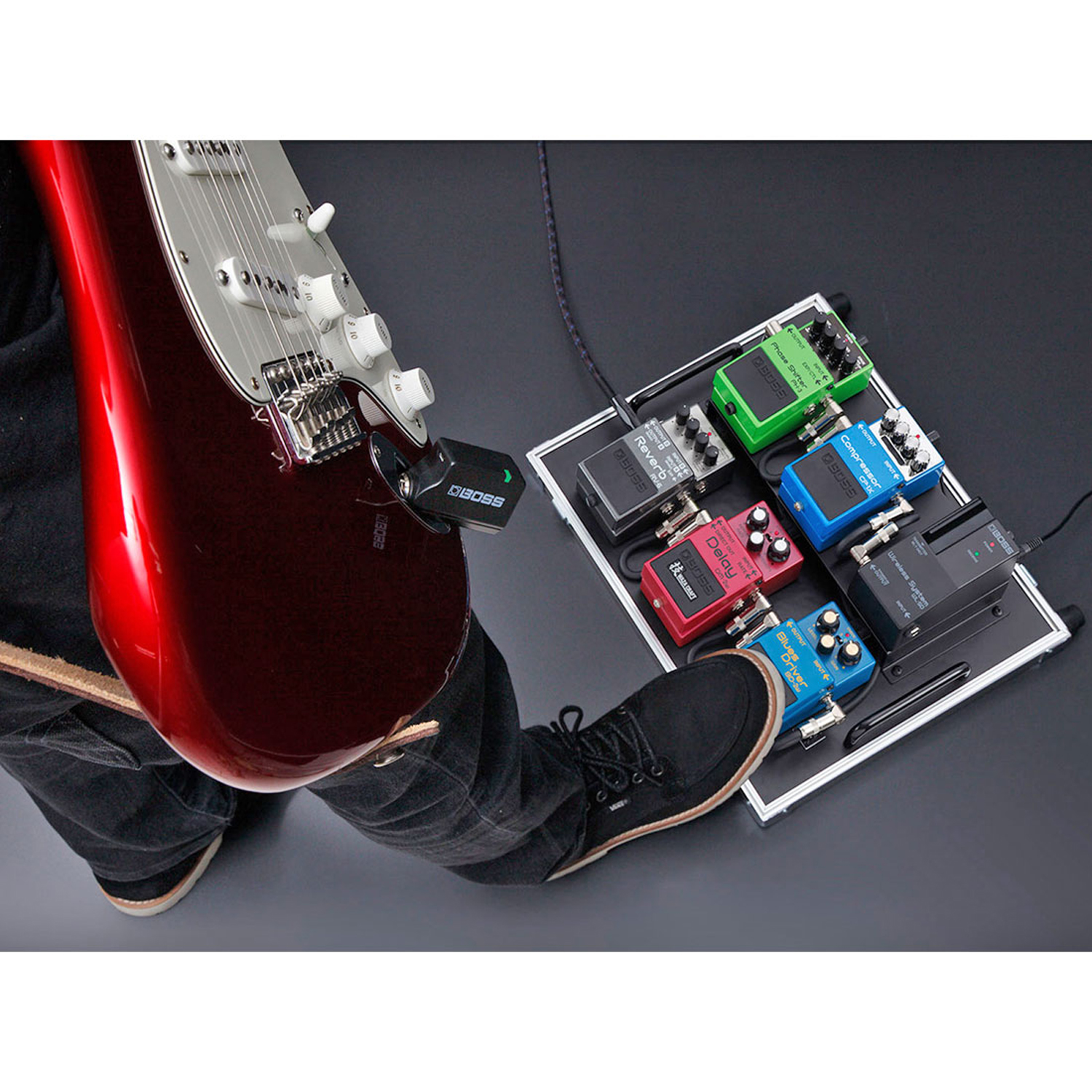Die neu entwickelte Boss Technologie für störungsfreien Sound übermittelt das Signal zuverlässig und mit einer extrem geringen Latenz von nur 2,3ms.