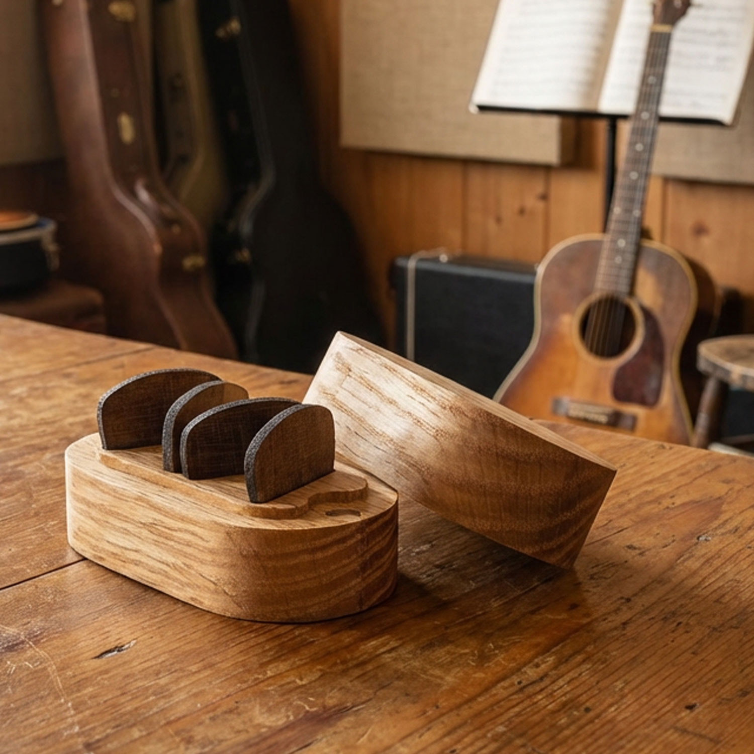 Ob als stilvolle Aufbewahrung für die eigenen Gitarren-Plektren oder als originelle Geschenkidee für leidenschaftliche Musiker – diese Kombination aus robuster Eichenholz-Box und warmen Walnuss-Plektren vereint Funktionalität mit natürlicher Eleganz und wird jeden Musiker begeistern.