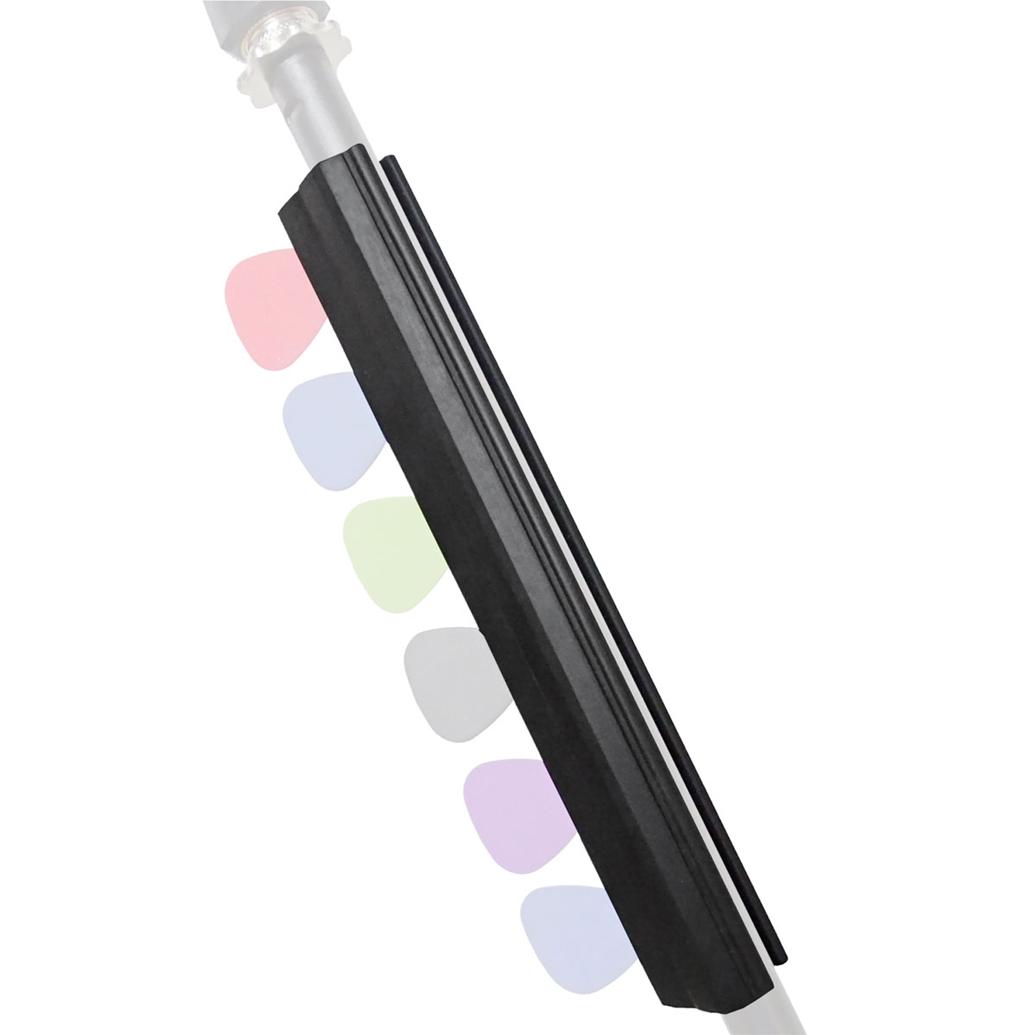 Die langlebige und flexible Plektrenhalterung wird einfach an ein Mikrofonstativ oder einen Mikrofon-Galgen geklemmt. Der Halter ist mit allen Standard-Mikrofonständern nutzbar.