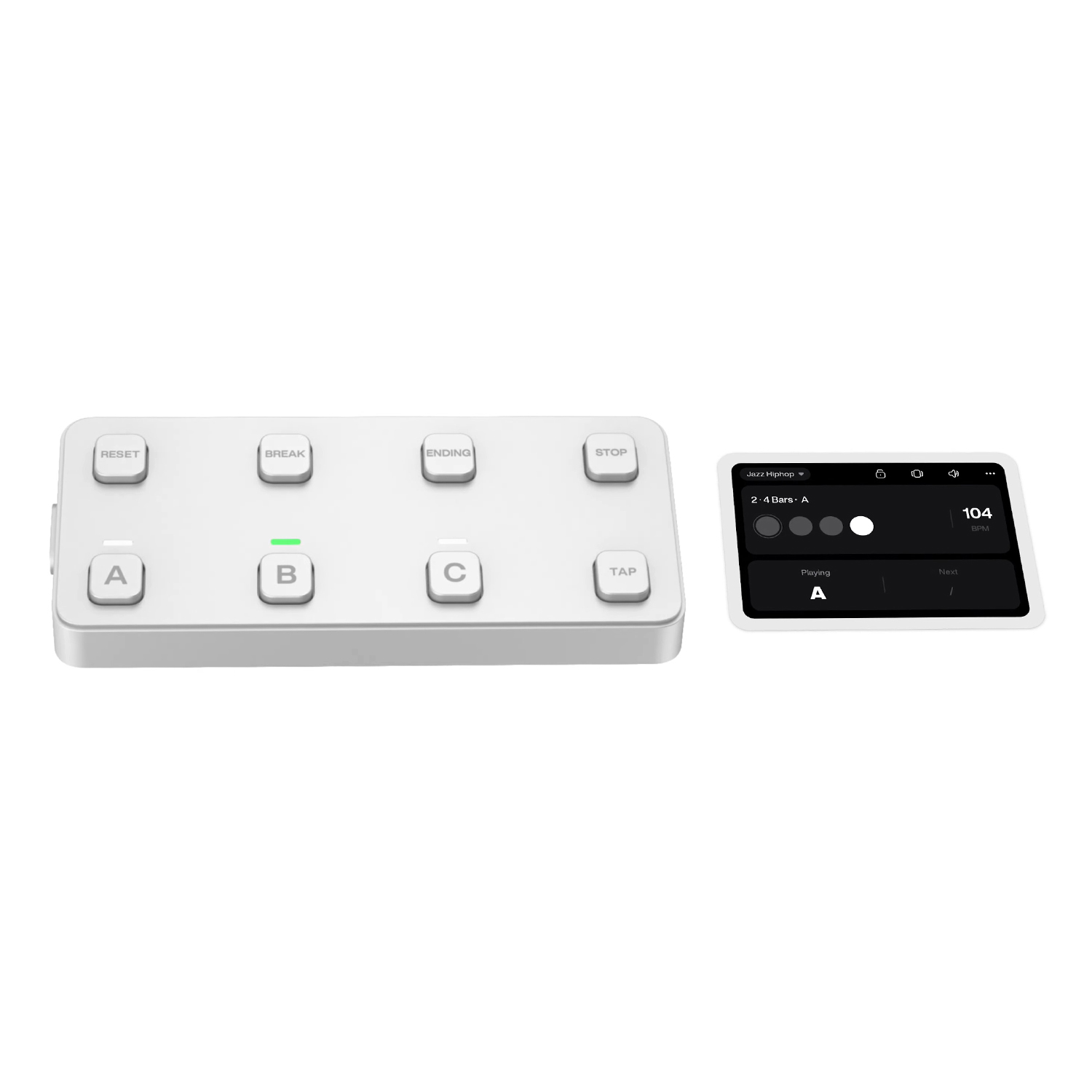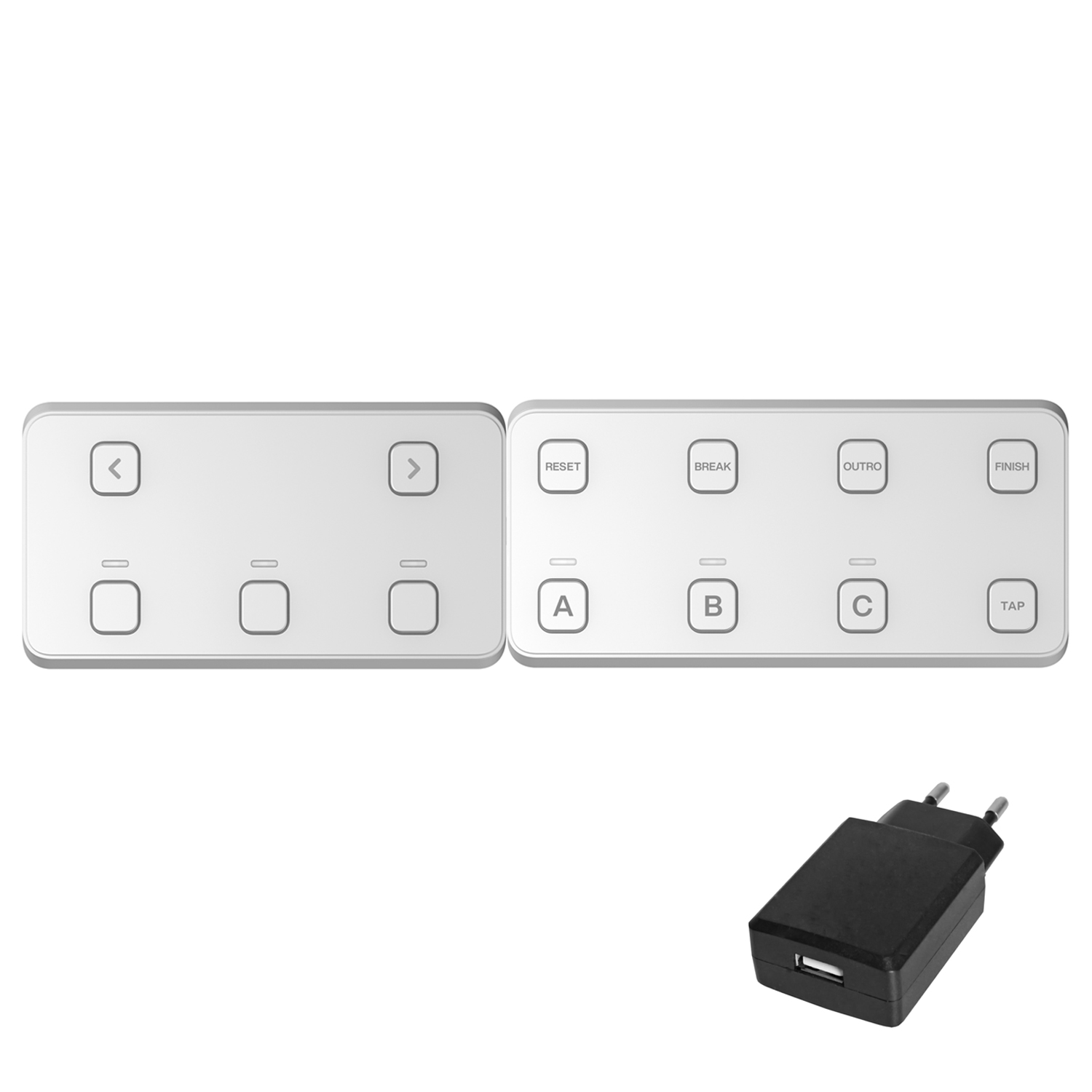 - Reset, Break, Outro, Finish und Tap Schalter