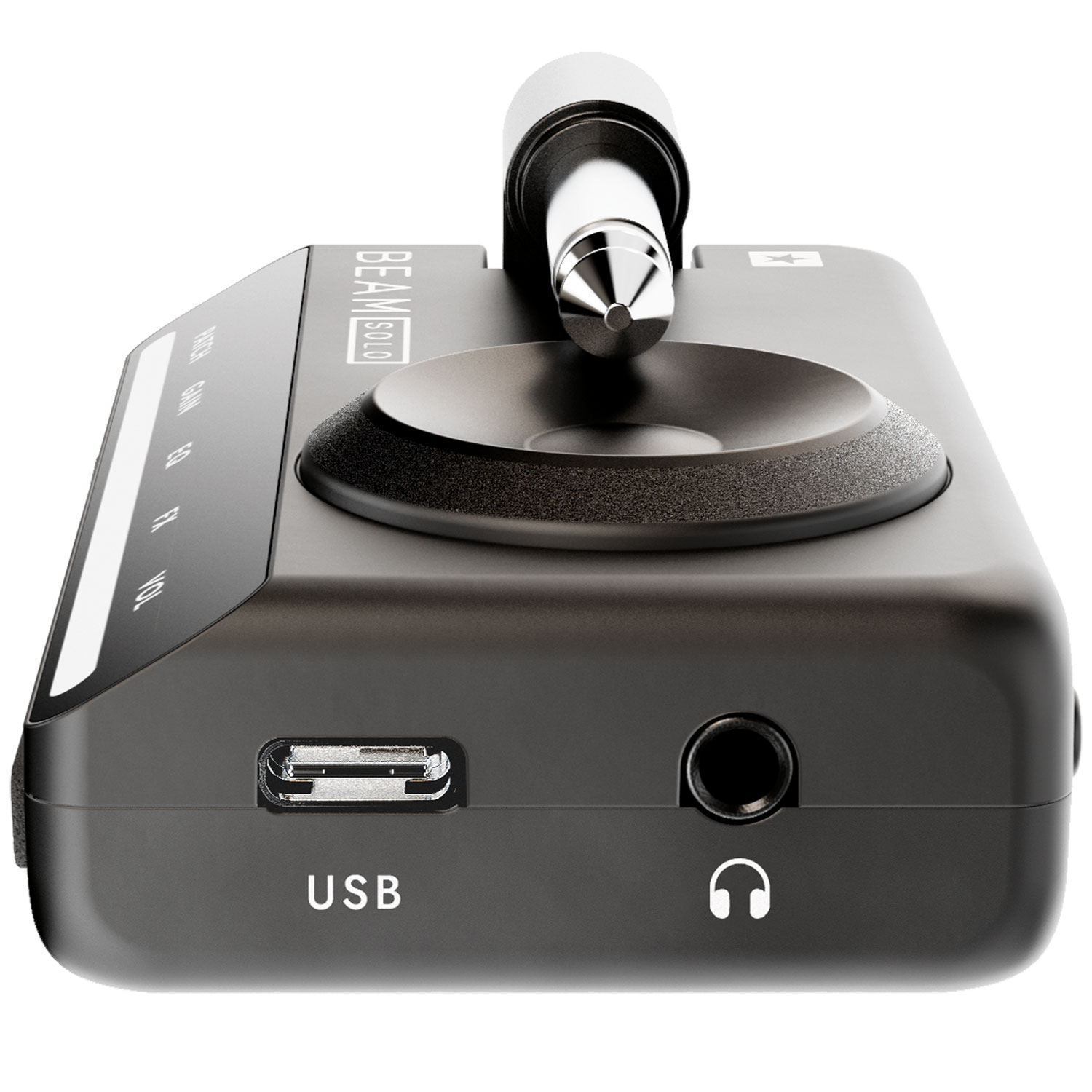 Was den BEAM-Solo wirklich einzigartig macht, ist seine Multifunktionalität: Als einziger Kopfhörerverstärker auf dem Markt ermöglicht er gleichzeitige Aufnahmen von Gitarre und Gesang. Hierzu muss ein Headset mit Mikrofon an den Kopfhöreranschluss angeschlossen werden. Damit wird er zur perfekten All-in-One-Lösung für Songwriter und Homerecording-Enthusiasten. Praktische Übungs-Features wie ein integriertes Stimmgerät und Metronom machen ihn zum idealen Übungspartner. Um Aufnahmen direkt am Computer zu machen funktioniert der Beam Solo auch Als USB-Audiointerface.