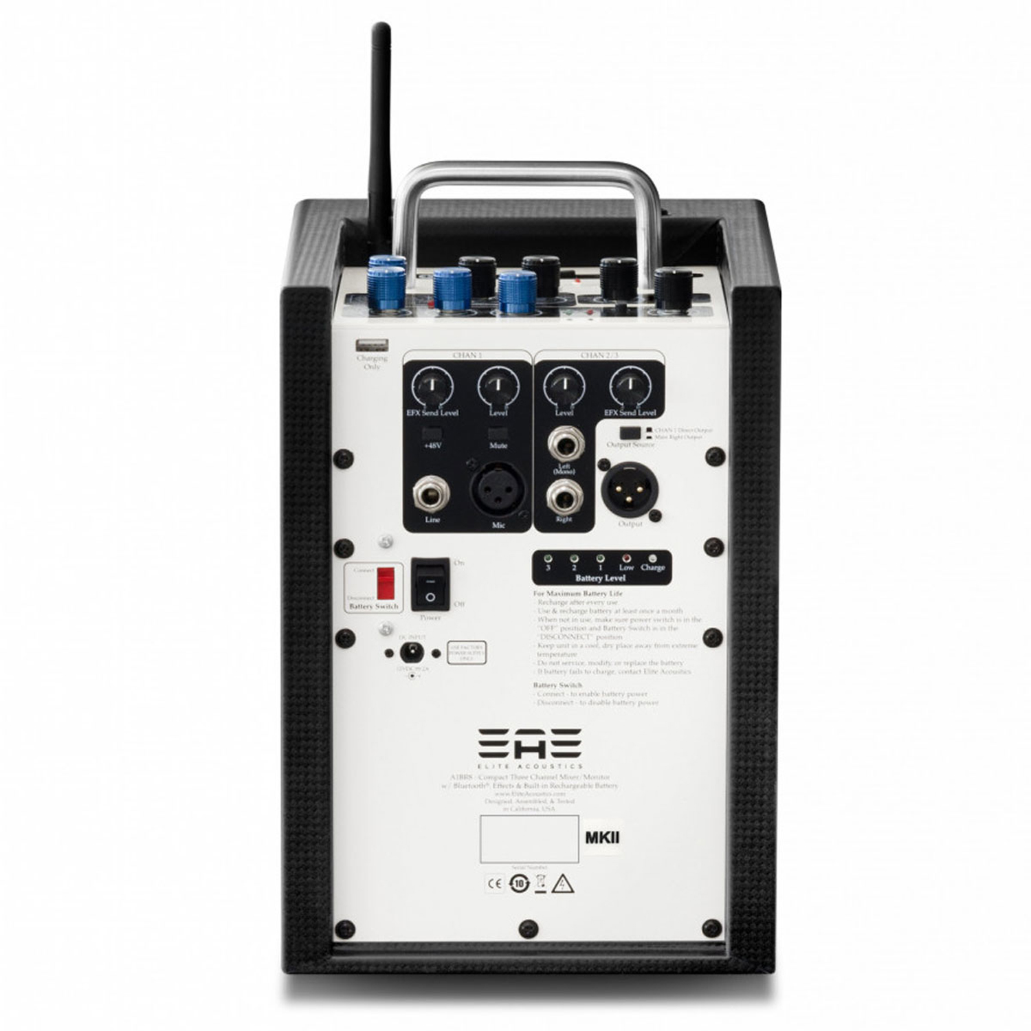 Akkubetriebener Akustikverstärker mit XLR-Kabel