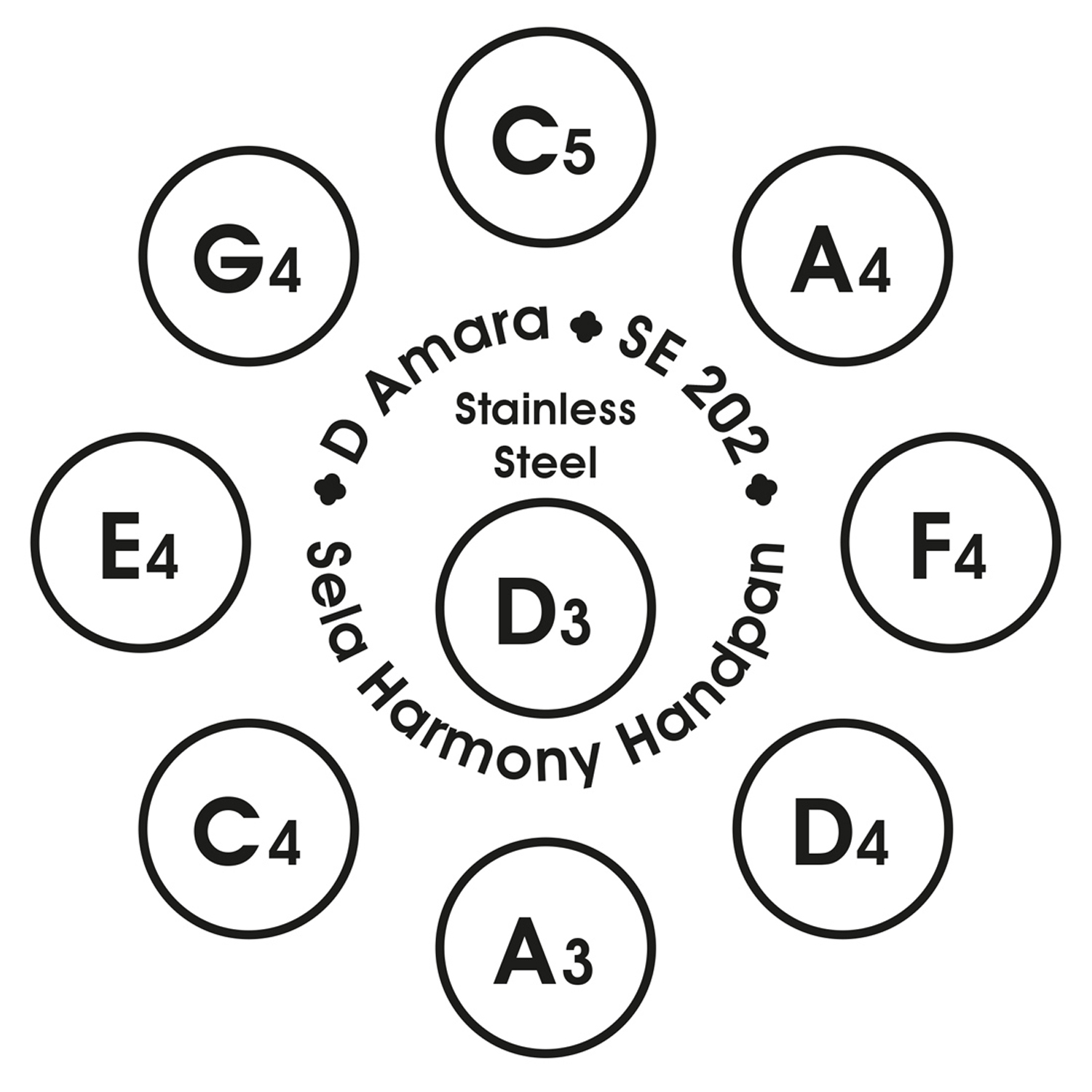 Die Sela Harmony Handpan eignet sich sowohl für Einsteiger als auch für den profesionellen Einsatz. Mit den neun Tönen D3/ A3, C4, D4, E4, F4, G4, A4, C5 lassen sich faszinierende Klangmuster erzeugen. Dabei können sowohl Rhythmen, einfache Melodien, Akkorde oder zweistimmige Melodien gespielt werden.