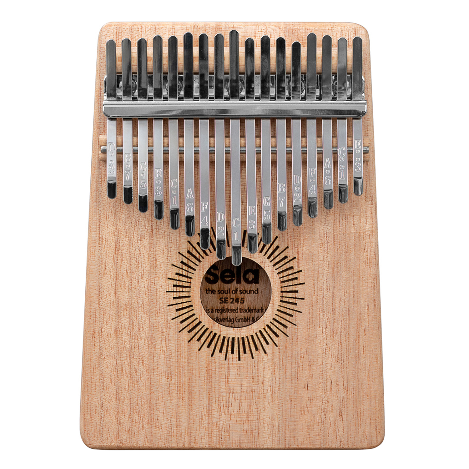 Die Sela Kalimba 17 ist ein Daumenklavier, das aus hochwertigem Mahagoni-Holz gefertigt ist. Durch den Holz-Korpus werden vor allem die tiefen Frequenzen verstärkt. So ensteht beim Spielen ein voller, klarer und warmer Klang.