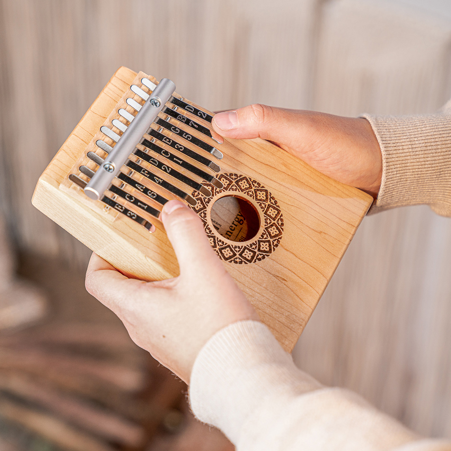 Die Kalimba ist leicht zu spielen und eignet sich aufgrund ihres sanften und beruhigenden Klangs ideal für für Klangtherapien, Meditation oder Yoga, aber auch Musiker werden mit der Kalimba Freude haben.