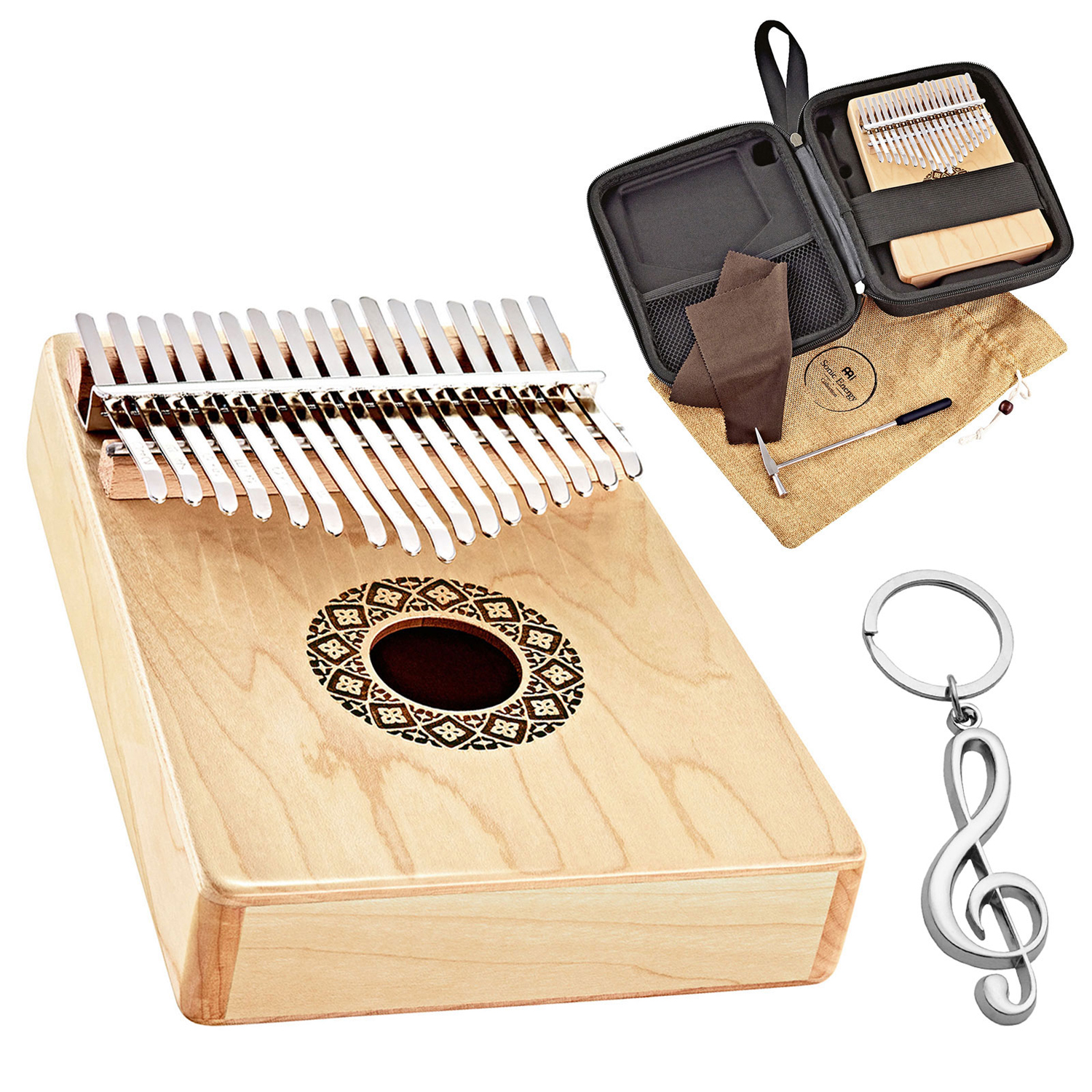 Das Resonanzloch in der Mitte sorgt für einen warmen Ton und langen Sustain. Mitder KL10706H können 17 Töne aus der C-Dur Tonleiter gespiel twerden. Dieser breite Tonumfang lässt das Spielen zahlreicher Melodien zu. Zum Spielen werden die Tasten der Kalimba mit dem Daumen angestoßenbzw. angezupft.