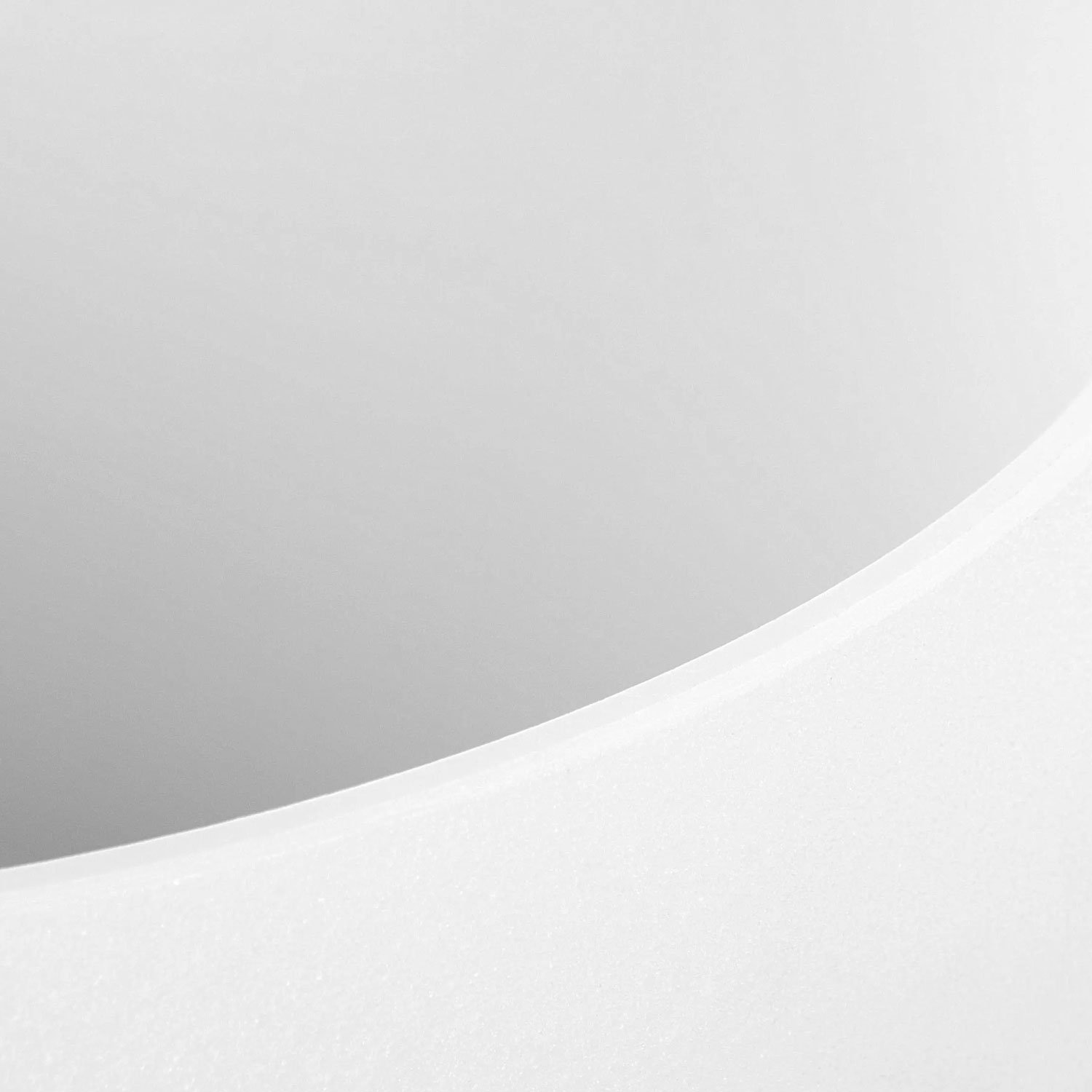 Frostglas-Design mit einer rauen, weißen Oberfläche. Dank eines speziellen Herstellungsverfahrens, bei dem Glas geschmolzen und mittels Zentrifuge in die gewünschte Form gebracht wird, besitzen sie