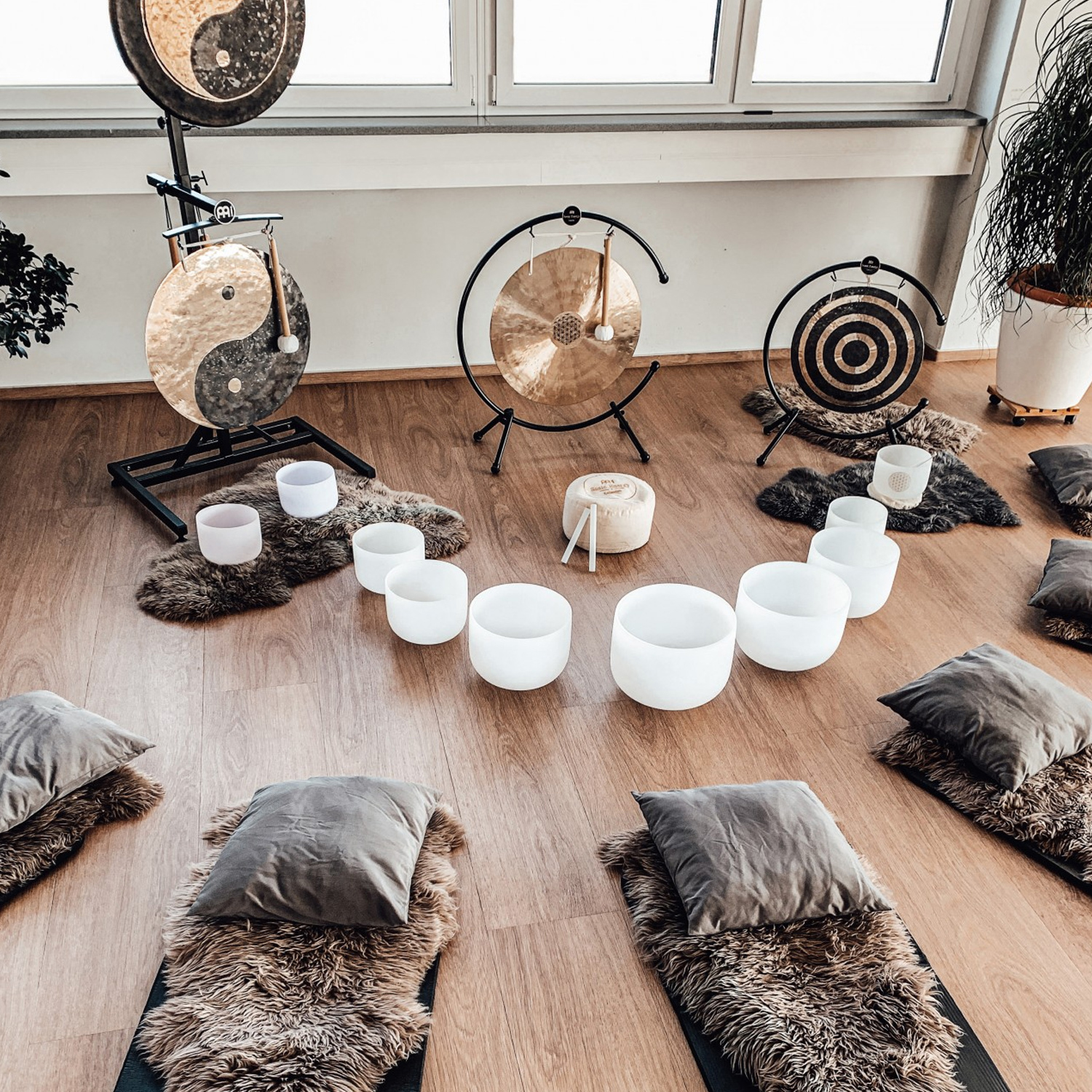 Beim sanften Anschlagen oder Reiben der Klangschale breitet sich ein lang anhaltender Ton aus, sodass die Energie in der gesamten Umgebung spürbar wird.