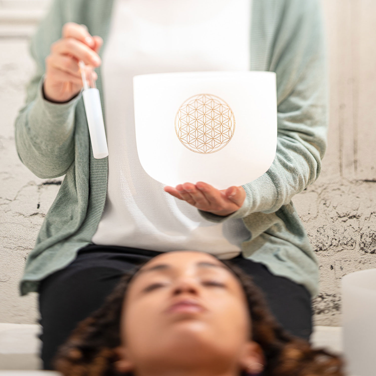 Auch das Anschlagen einer Klangschale oder Crystal Bowl funktioniert durch die geschmeidige Beschichtung hervorragend. Der Glasgriff bietet dabei einen sehr angenehmen Halt und ermöglicht eine präzise und kontrollierte Spielweise, für Anfänger und erfahrene Spieler Lieferumfang: