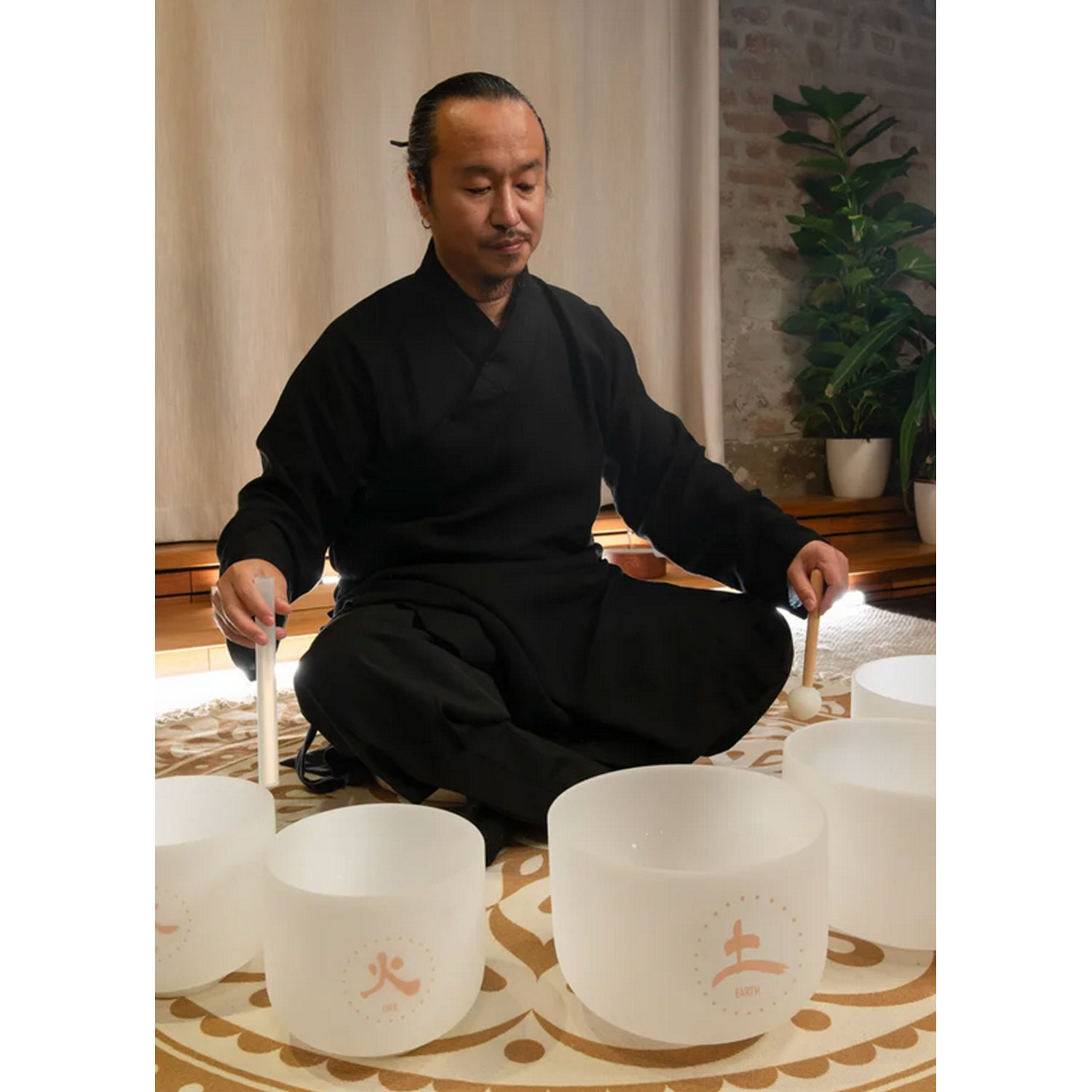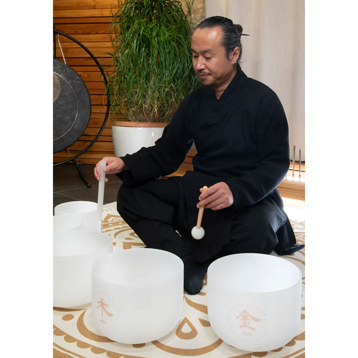 Jede der fünf Schalen besteht aus hochreinem Quarz, einem Material, das für seine klaren und reinen Schwingungseigenschaften geschätzt wird. Dieses Material verleiht den Schalen ihre außergewöhnlich tiefen und extrem langanhaltenden Resonanzen, die nicht nur hörbar, sondern im ganzen Körper spürbar sind. Die präzise Abstimmung der Frequenzen folgt dabei den ureigenen Prinzipien der traditionellen chinesischen Medizin: Jede Schale ist einem der Fünf Elemente zugeordnet und schwingt im Einklang mit dem Energiesystem des Körpers.