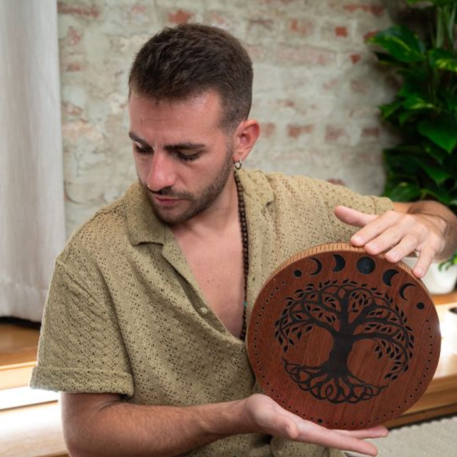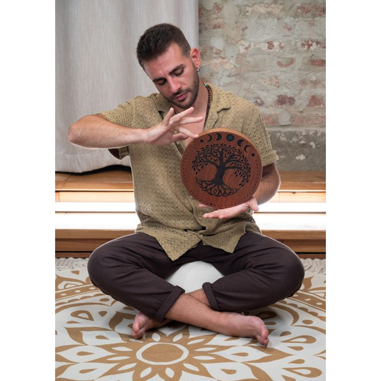 Die Meinl Sonic Energy Rain Disk in der 10-Zoll-Größe ist ein wunderschön gestaltetes, einfach zu spielendes Instrument, das die beruhigenden Klänge von fließendem Wasser nachbildet. Mit ihrer gravierten Oberfläche, die Mondphasen und den Baum des Lebens zeigt, vereint sie natürliche Ästhetik mit meditativer Klangerfahrung zu einem einzigartigen Instrument für Entspannung und Klangtherapie.