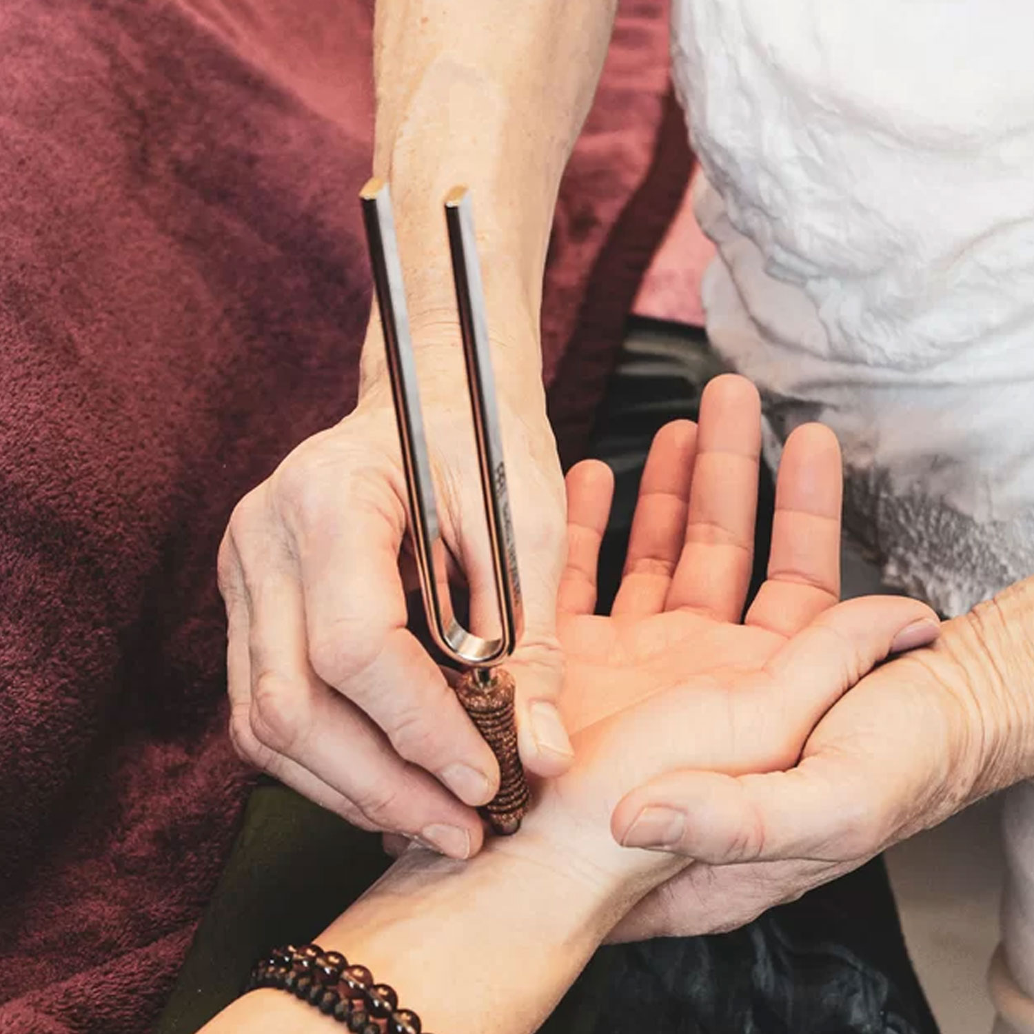 Abends unterstützt die Erden-Stimmgabel mit dem beruhigenden Om-Klang den Übergang in die Entspannung. Ihre harmonisierende Frequenz wirkt ausgleichend auf das Herz-Chakra, löst sanft Verspannungen und bereitet ideal auf erholsamen Schlaf vor.