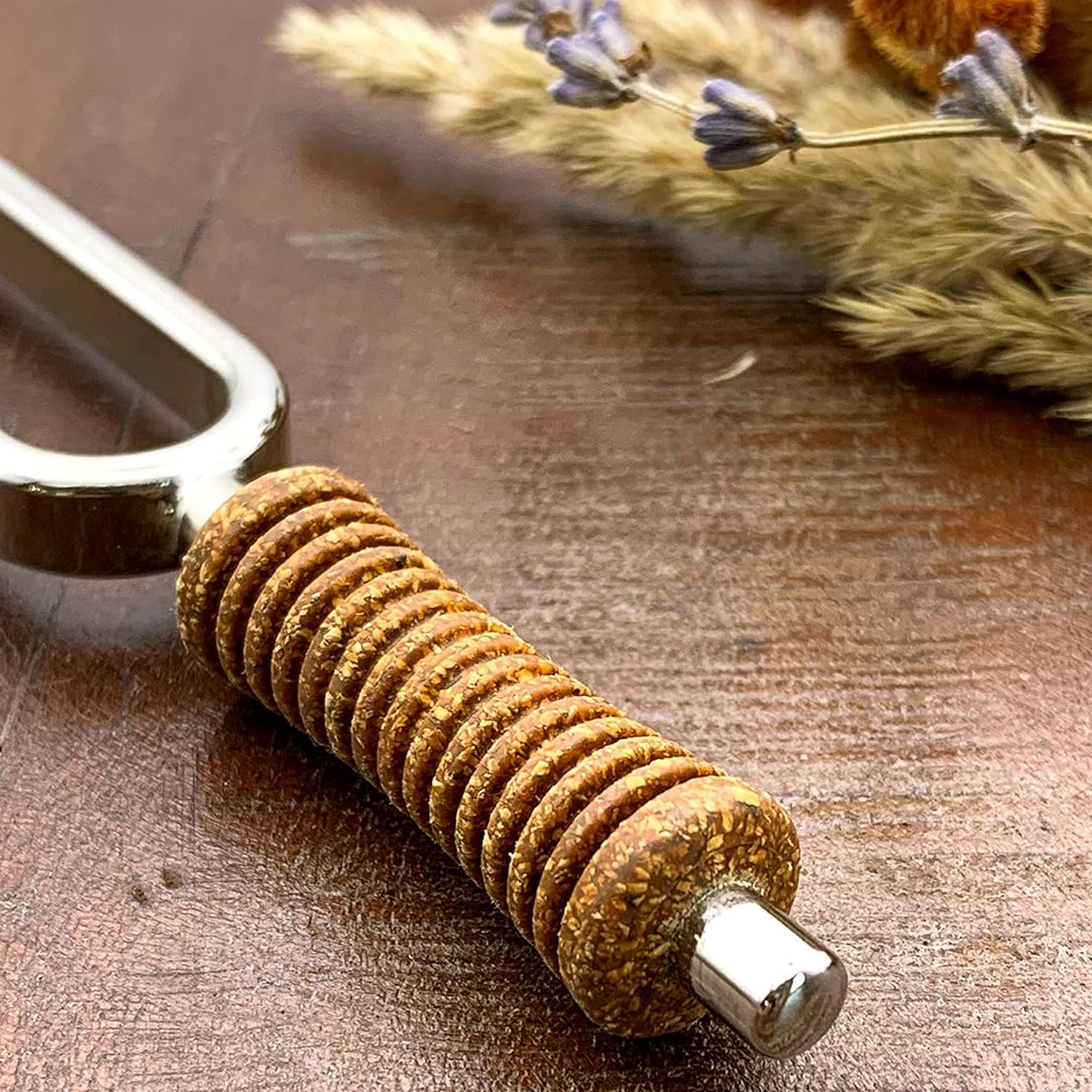 Die Stimmgabeln sind aus hochwertigem vernickeltem Stahl in Deutschland handgefertigt und überzeugen durch ihre präzise Schwingungsqualität. Der Griff aus Kork ermöglicht es der Stimmgabel optimal zu schwingen. Jede Gabel trägt eine feine Gravur mit der jeweiligen Frequenz und dem Herstellerlogo. Der mitgelieferte Buchenholz-Ständer bietet eine elegante und sichere Aufbewahrungsmöglichkeit, wenn die Stimmgabeln nicht im Einsatz sind.