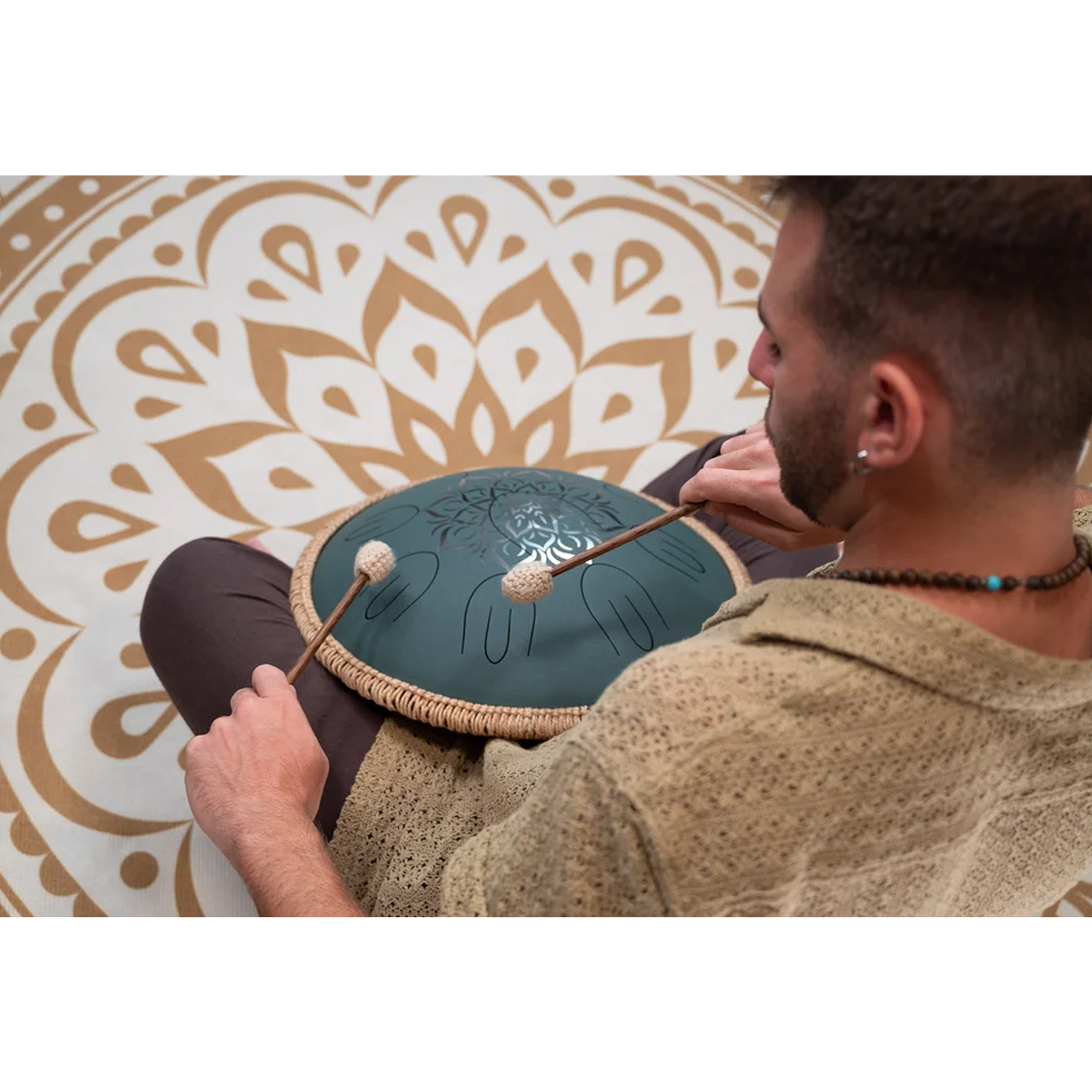 Die Zungentrommel kann sowohl mit den mitgelieferten Holzschlägeln mit Gummikopf als auch mit den Fingern gespielt werden. Einfach auf eine ebene Fläche oder den Schoß legen - und schon kann die meditative Klangreise beginnen. Im Lieferumfang enthalten sind neben den beiden Schlägeln auch eine praktische Tragetasche mit Reißverschluss und Griff für sicheren Transport und Aufbewahrung.