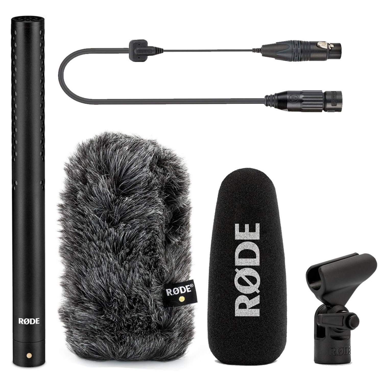 Das NTG-5 Kit kommt mit umfangreichem Zubehör, wie dem PG2-R Pistolengriff als Halterung und dem passenden PG2-R Pro-Anschlusskabel. Mit dem Pistolengriff und dem speziell designten Kabel ist das NTG-5 perfekt entkoppelt, so dass keinerlei Handhabungsgeräusche oder Trittschall in der Aufnahme zu hören sind. Dazu kommt eine passende Mikrofonklammer, ein Deluxe Fell-Windschutz für Aufnahmen im Freien und ein Transportbeutel. Durch das 3/8" Gewinde an der Unterseite des Pistolengriffs kann dieser problemlos auf einer Tonangel montiert werden.