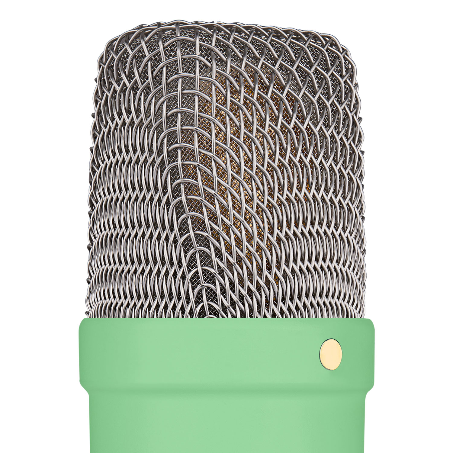 Die goldbedampfte 1 Zoll Mikrofonkapsel liefert, wie bereits beim NT1-A, hervorragenden, klaren und definierten Klang. Als Ausgang hat das Mikrofon einen XLR Anschluss mit vergoldeten Kontakten. Das Kondensator-Mikrofon benötigt zur Stromversorgung 48V Phantomspeisung, die von einem Audio-Interface oder einem Mischpult geliefert werden muss.