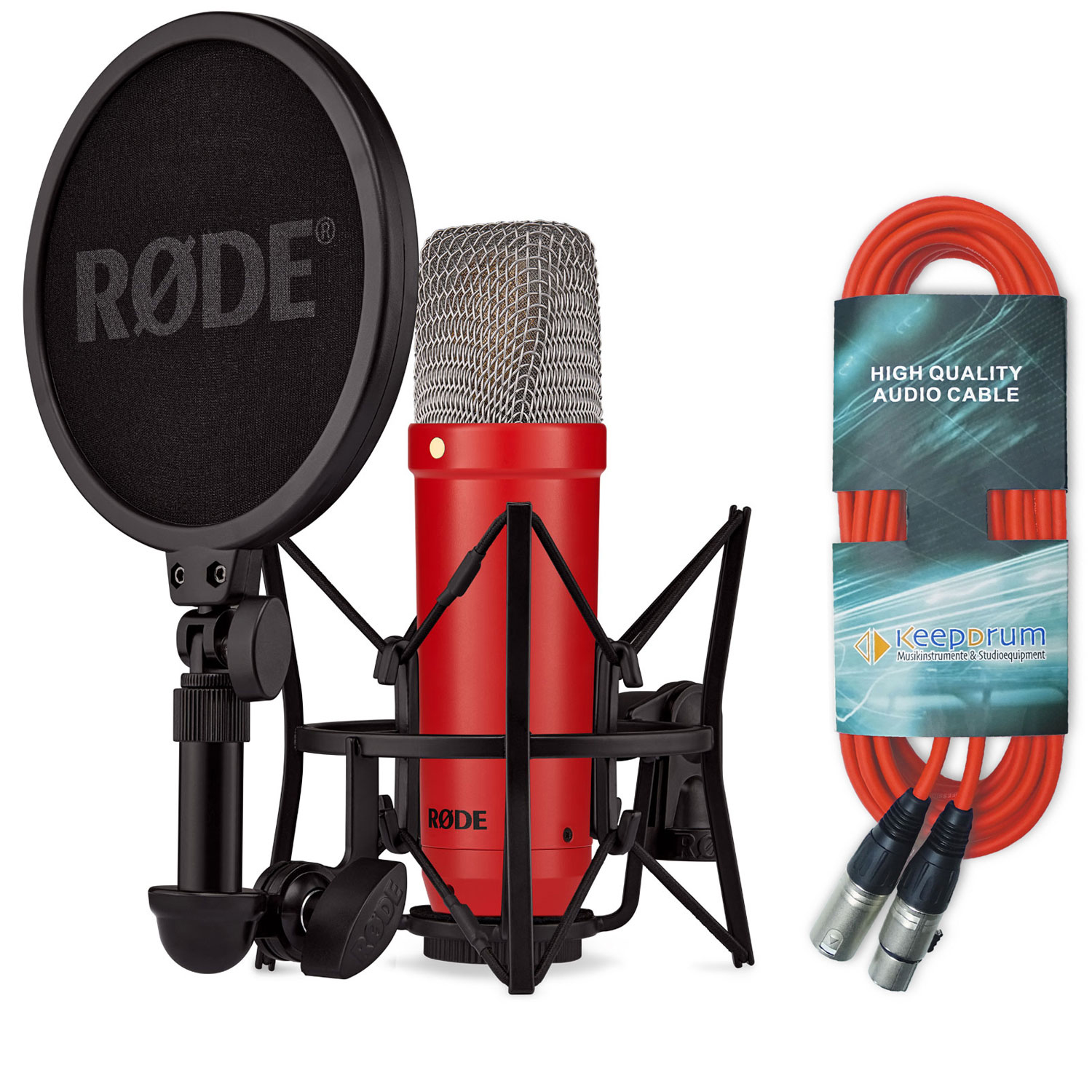 Im Lieferumfang ist die SM6 Deluxe Mikrofon-Spinne mit integriertem Popschutz enthalten, sowie ein XLR-Kabel 6m und ein Staubschutzbeutel für das Mikrofon. + keepdrum MC-001XX RD Mikrofonkabel XLR Female / XLR Male Rot