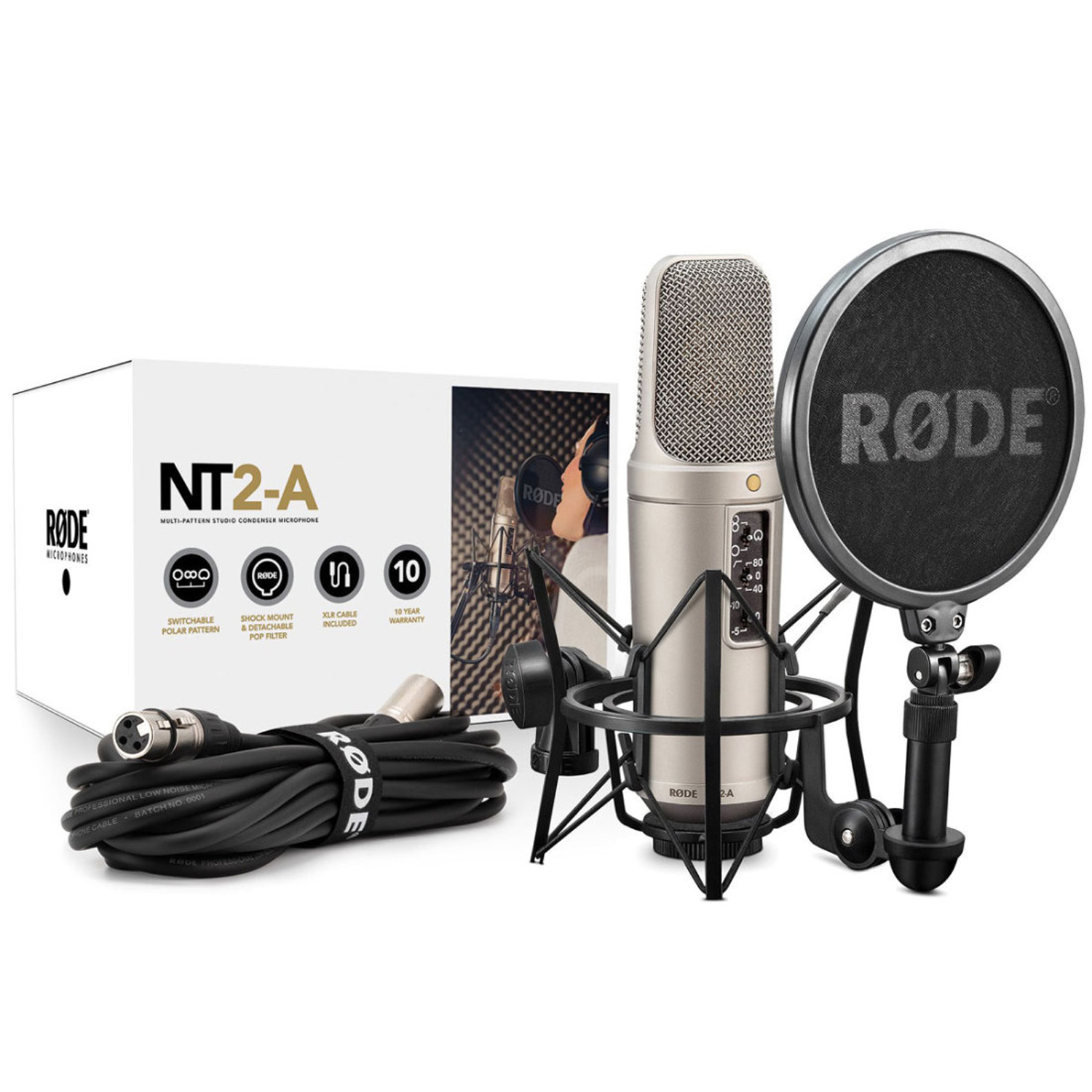 Das Rode NT2-A knüpft an den Erfolg des Rode NT2 an. Dieses 1"-Großmembran-Kondensatormikrofon eignet sich durch drei einstellbare Richtcharakteristika für eine Vielzahl von Anwendungen. Die Richtcharakteristik lässt den Nutzen wählen zwischen Kugel, Nieren und Acht. Hinzu kommen die hervorragenden technischen Eigenschaften des Rode NT2-A das den beliebten Klangcharakter von Mikrofonklassikern aus den 50s und 60s nachahmt.Das NT2-A kommt im Set mit der SM6 Mikrofonspinne, die störende Geräusche durch Trittschall oder tieffrequente Vibrationen eliminiert und nicht an die Mikrofonkapsel gelangen lässt. Die SM6 Spinne verfügt über einen Popschutz der Explosivlaute ideal abdämpft. Wird der Popfilter nicht benötigt so kann dieser abgenommen werden.Zum Anschluss des NT2-A ist ein 6m langes XLR Kabel im Lieferumfang enthalten sowie ein Staubschutzbeutel zum Aufbewahren des Mikrofons.Details:- Wählbare Richtcharakteristik: Acht, Kugel und Niere