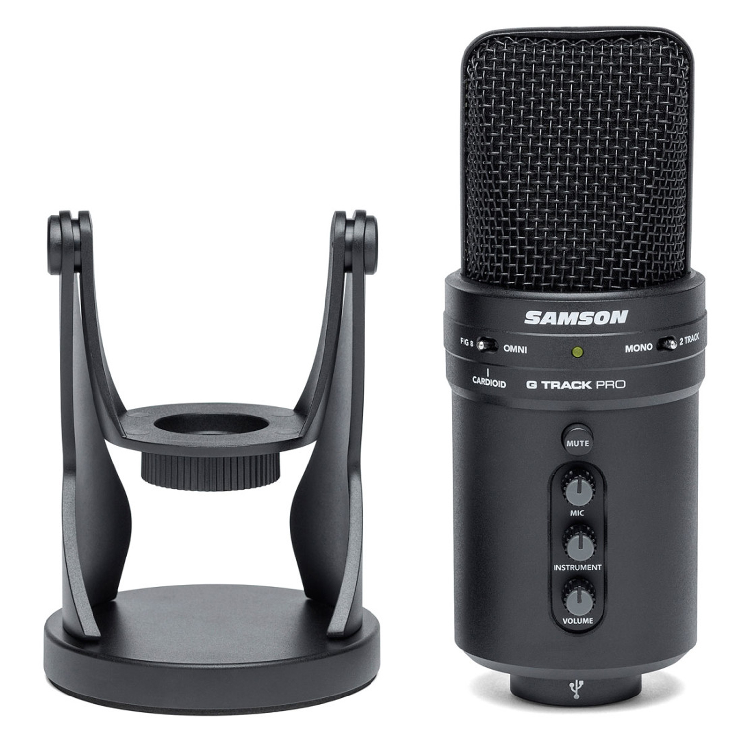 Das Samson G-Track Pro ist ein hochwertiges Kondensator USB-Mikrofon mit integriertem Audio-Interface und einem zusätzlichen Instrumenteneingang direkt am Mikrofon. Die Pro Version basiert auf dem extrem erfolgreichen Vorgänger-Modell G-Track und bietet eine üppige Austattung, die das G-Track Pro zur perfekten All-In-One-Lösung macht für Musikaufnahmen, Podcasting und Streaming.