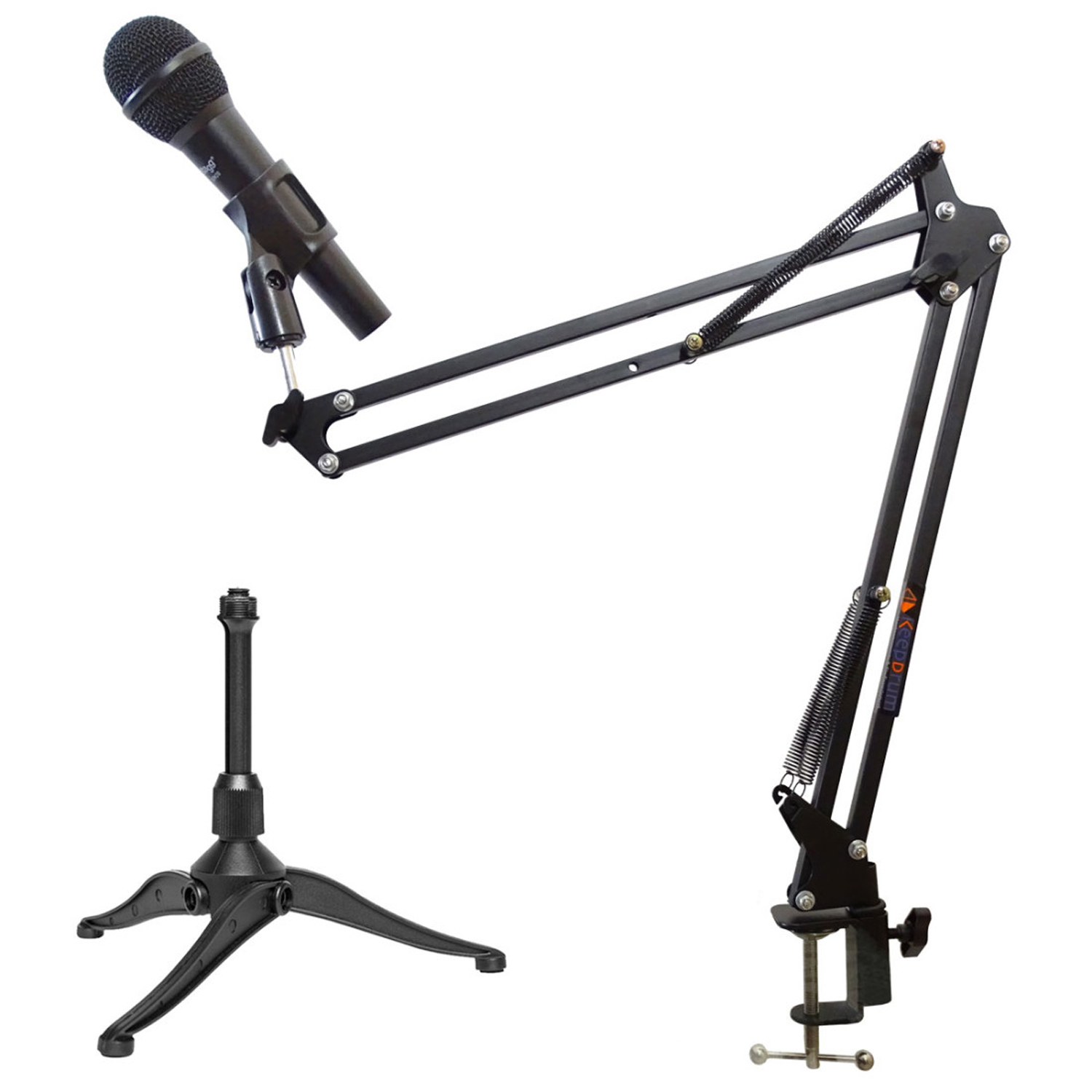 Durch das mitgelieferte USB-Kabel und das Tisch-Stativ mit Mikrofonklammer ist das Mikrofon-Set sofort einsatzbereit.