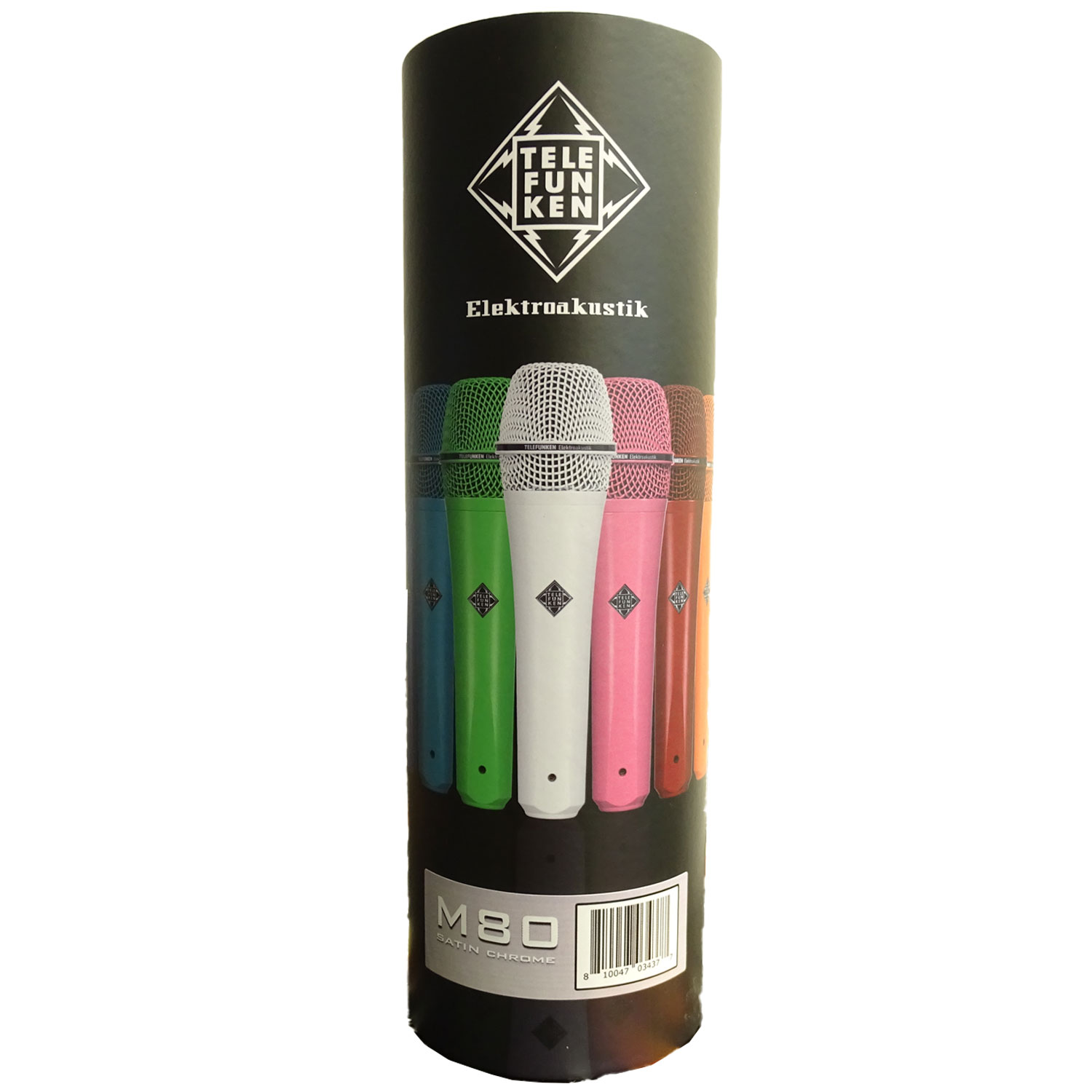Das Telefunken M80 in der exklusiven Satin Chome-Optik ist ein dynamisches Mikrofon. Seit über einem Jahrzehnt hat es sich als unverzichtbares Werkzeug im Live-Betrieb und im Studio etabliert. Was es so besonders macht ist seine Fähigkeit, die Robustheit und Zuverlässigkeit eines dynamischen Mikrofons mit der klanglichen Detailtreue und Höhenpräzision eines Kondensator-Mikrofons zu vereinen.