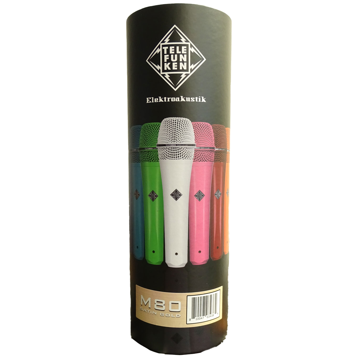 Das Telefunken M80 in der exklusiven Satin Gold-Optik ist ein dynamisches Mikrofon. Seit über einem Jahrzehnt hat es sich als unverzichtbares Werkzeug im Live-Betrieb und im Studio etabliert. Was es so besonders macht ist seine Fähigkeit, die Robustheit und Zuverlässigkeit eines dynamischen Mikrofons mit der klanglichen Detailtreue und Höhenpräzision eines Kondensator-Mikrofons zu vereinen.