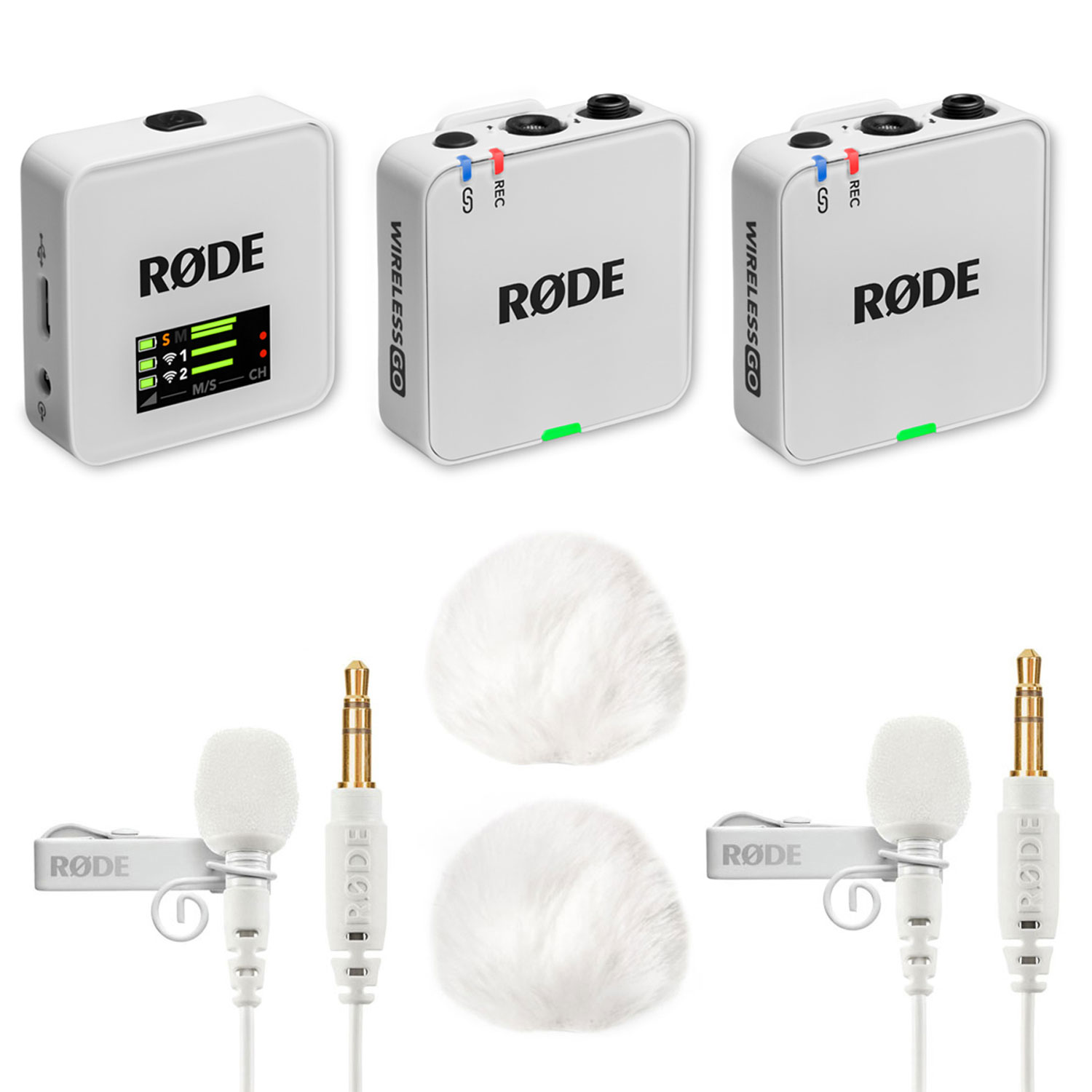 Im Lieferumfang sind unterschiedliche Verbindungskabel zum Anschließen der Module an Kamera, PC oder Smartphone enthalten. Zudem werden drei passende Fell-Windschutz für Aufnahmen im Freien mitgeliefert sowie ein Neopren-Transportetui und ein USB 3-fach Lade-Hub zum Laden der Module.