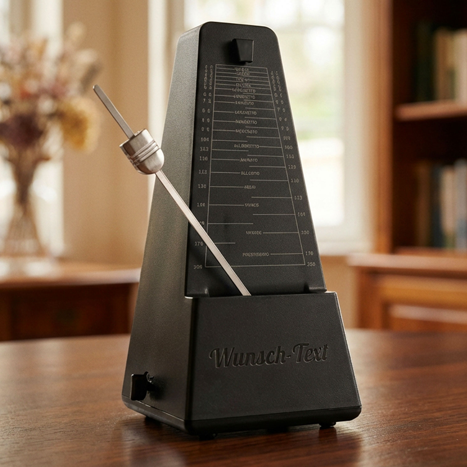 Der Mechanismus des Taktgebers arbeitet präzise mit einer sehr niedrigen Tempo-Toleranz von nur 0,08 Prozent. Dadurch wird eine akkurate Einhaltung des Tempos gewährleistet. Dabei ist zu beachten, dass das Metronom auf einer ebenen Fläche abgestellt wird - nur so kann das Pendel korrekt schwingen, um das Tempo korrekt einzuhalten.