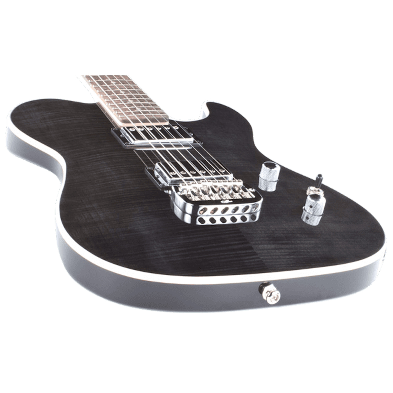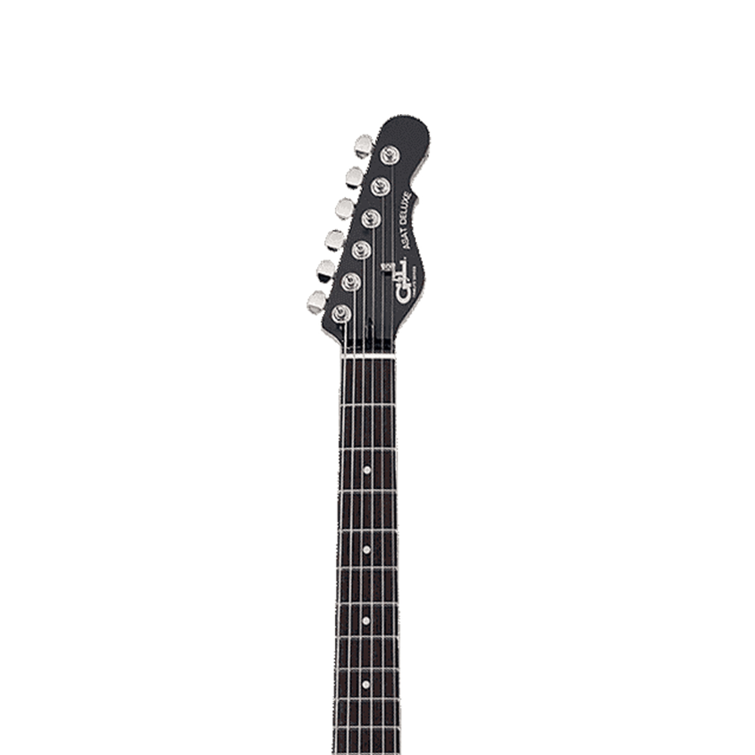 Der Korpus der ASAT Deluxe Tribute besteht aus Nato, (ähnlich wie Mahagoni) das für seinen warmen und resonanten Klang bekannt ist. Die wunderschöne, transparente schwarze Lackierung lässt die natürliche Holzmaserung durchscheinen und verleiht der Gitarre eine edle Optik. Der Ahornhals mit Palisandergriffbrett bietet ein komfortables Spielgefühl und eine exzellente Bespielbarkeit, die sowohl für Anfänger als auch für erfahrene Gitarristen ideal ist.