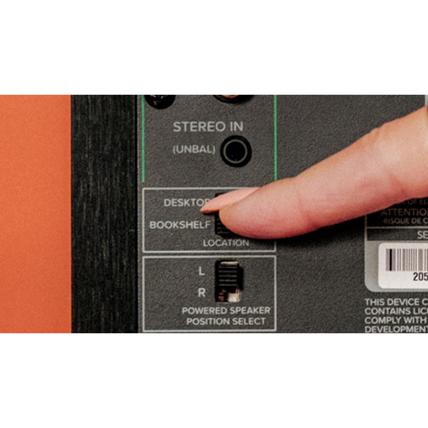 Standort-Modus für optimierte Wiedergabe als Desktop- oder Regal-Lautsprecher. So kannst du einfach die Lautsprecher an einen Gaming-PC oder Audio-Interface anschließen und den Klangregler justieren bis du das gewünschte Hörerlebnis hast.