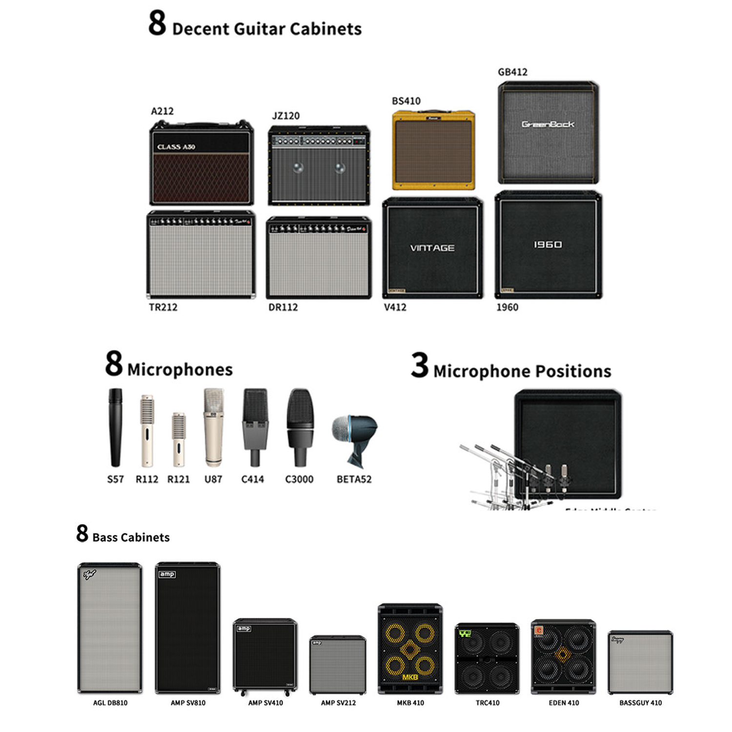 - 25 Electric Amp Models / 3 Bass-Amps/ 2 Acoustic-Amps