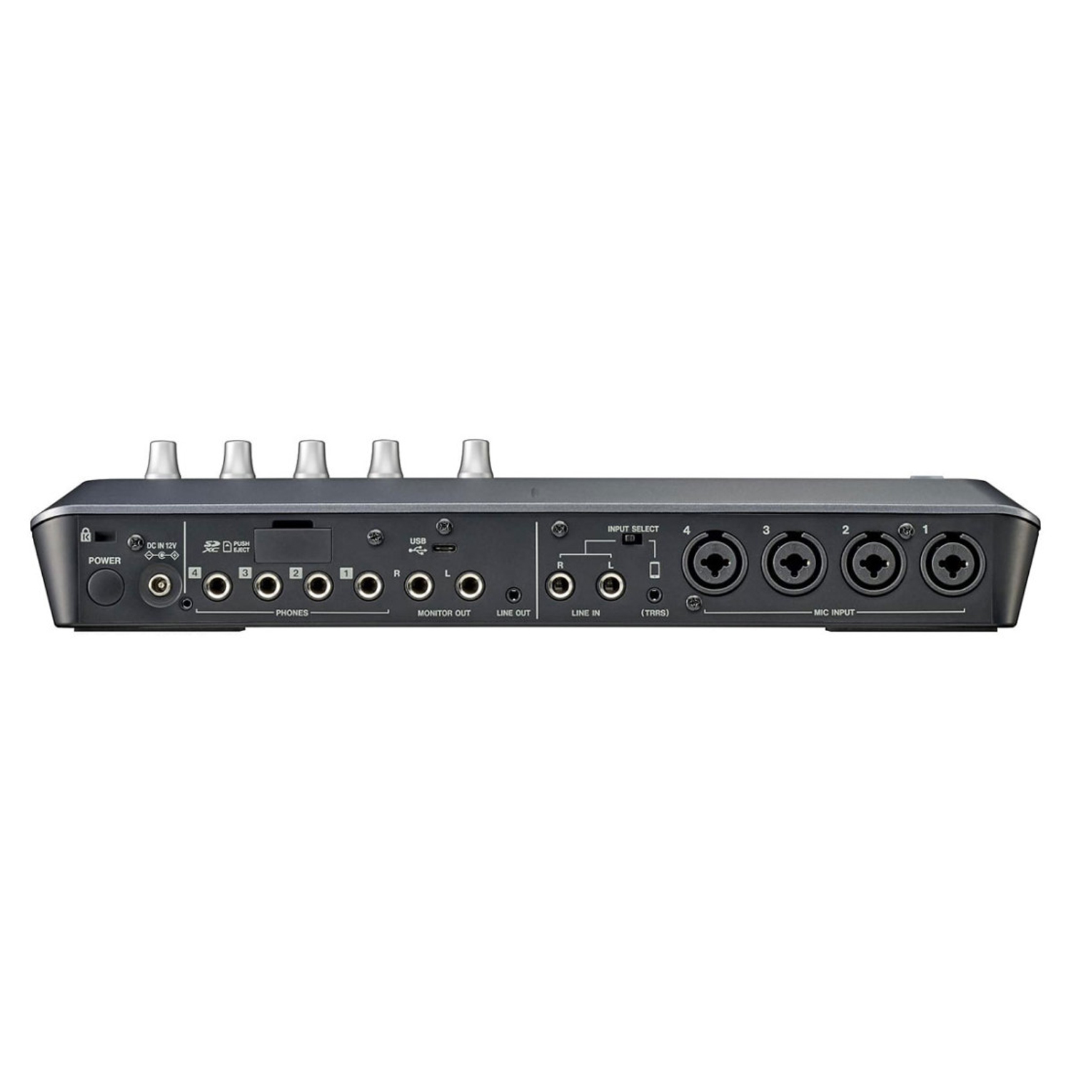 - 4 Mikrofoneingänge: 6,3mm XLR/TRS-Kombibuchsen (48V Phantomspeisung wählbar)