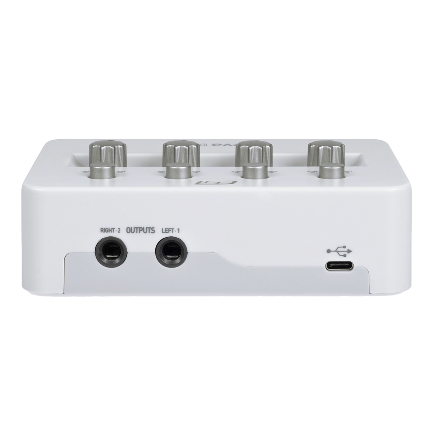 Neben zwei Combo-Buchsen mit XLR- und Klinkenanschluss hat das Interface zwei weitere Instrumenteineingänge mit zuschaltbarem HI-Z Schalter. Bei Bedarf kann für Mikrofone 48V Phantomspeisung per Knopfdruck zugeschaltet werden.