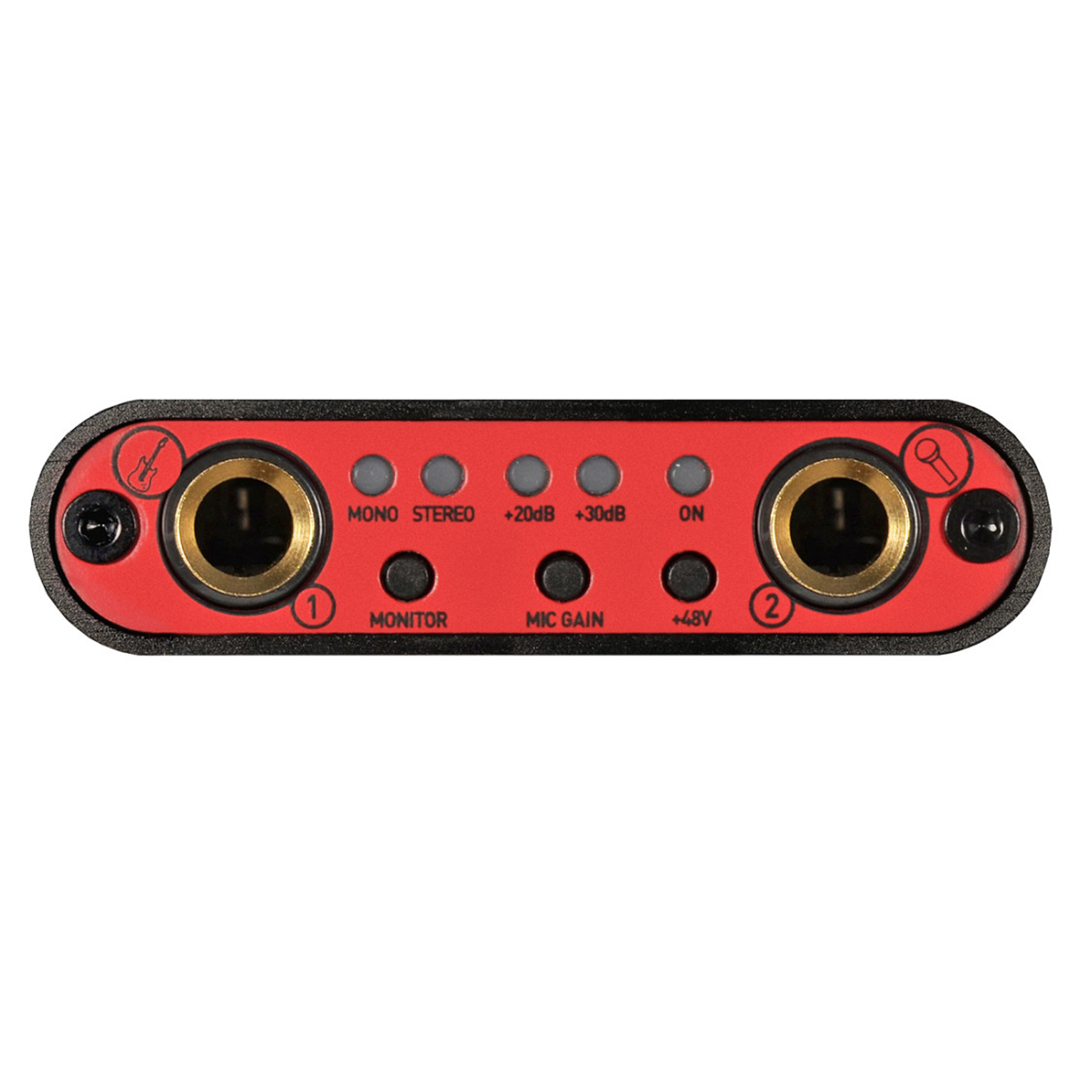 Der UGM192 bietet an seiner Frontseite je eine Anschlussmöglichkeit für eine Gitarre und ein Mikrofon. Durch die zuschaltbare Phantomspeiseung ist der Anschluss von dynamischen sowie von Kondensator-Mikrofonen möglich. Das Interface arbeitet per USB-Anschluss direkt zwischen Gitarre, Mikrofon und Ihrem Computer. Auch die Stromversorgung läuft per USB, womit das Interface mit einer externen Batterie, wie einer Powerbank (nicht im Lieferumfang enthalten), auch als vollständig mobiles Gerät on the Road genutzt werden kann.
