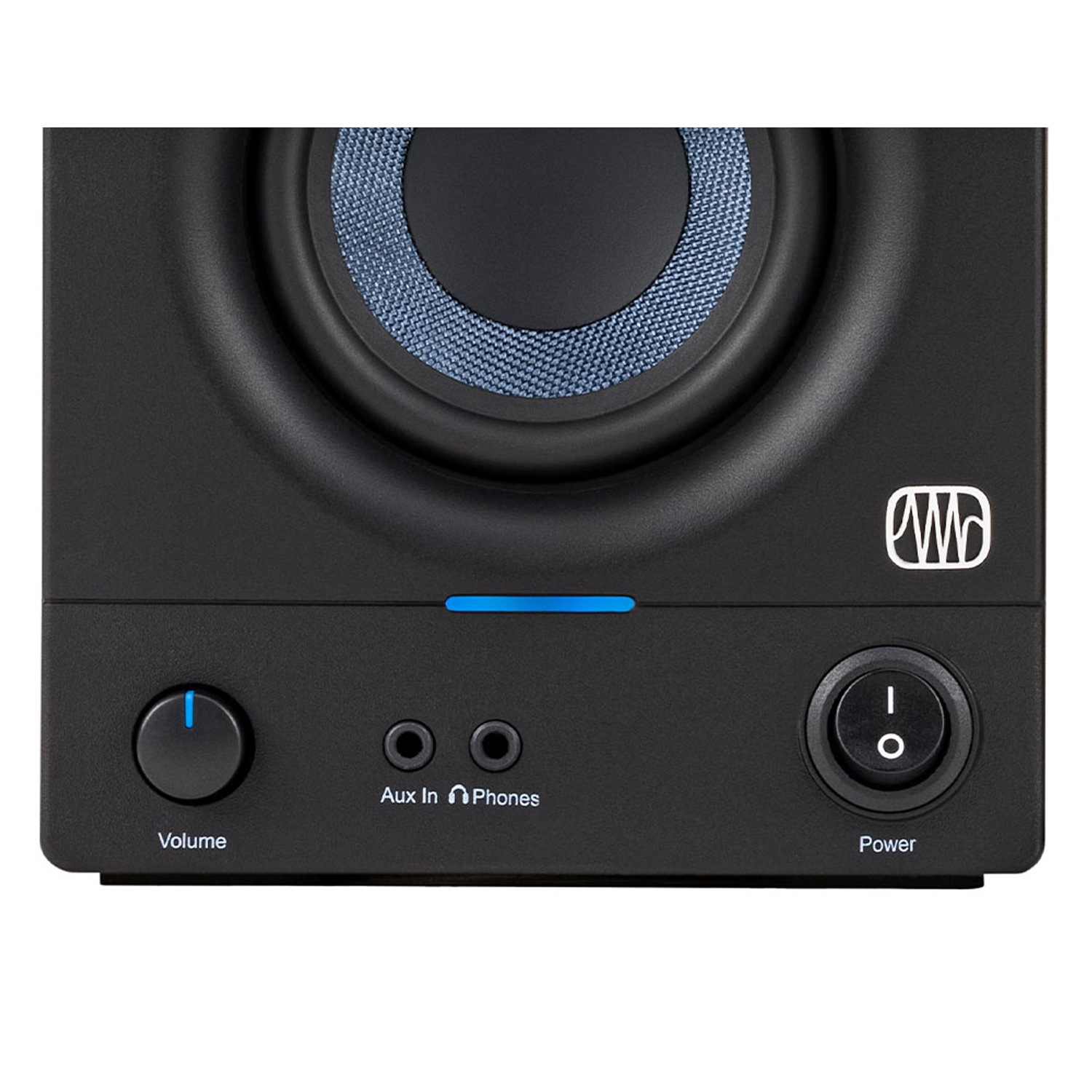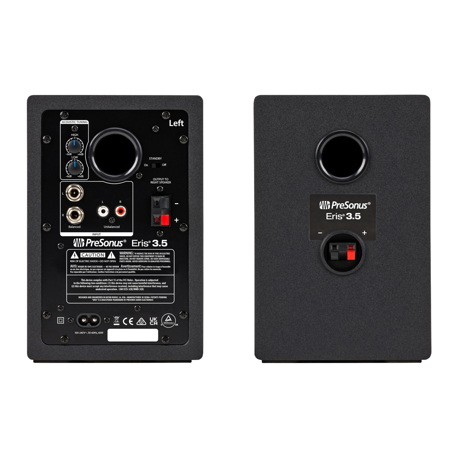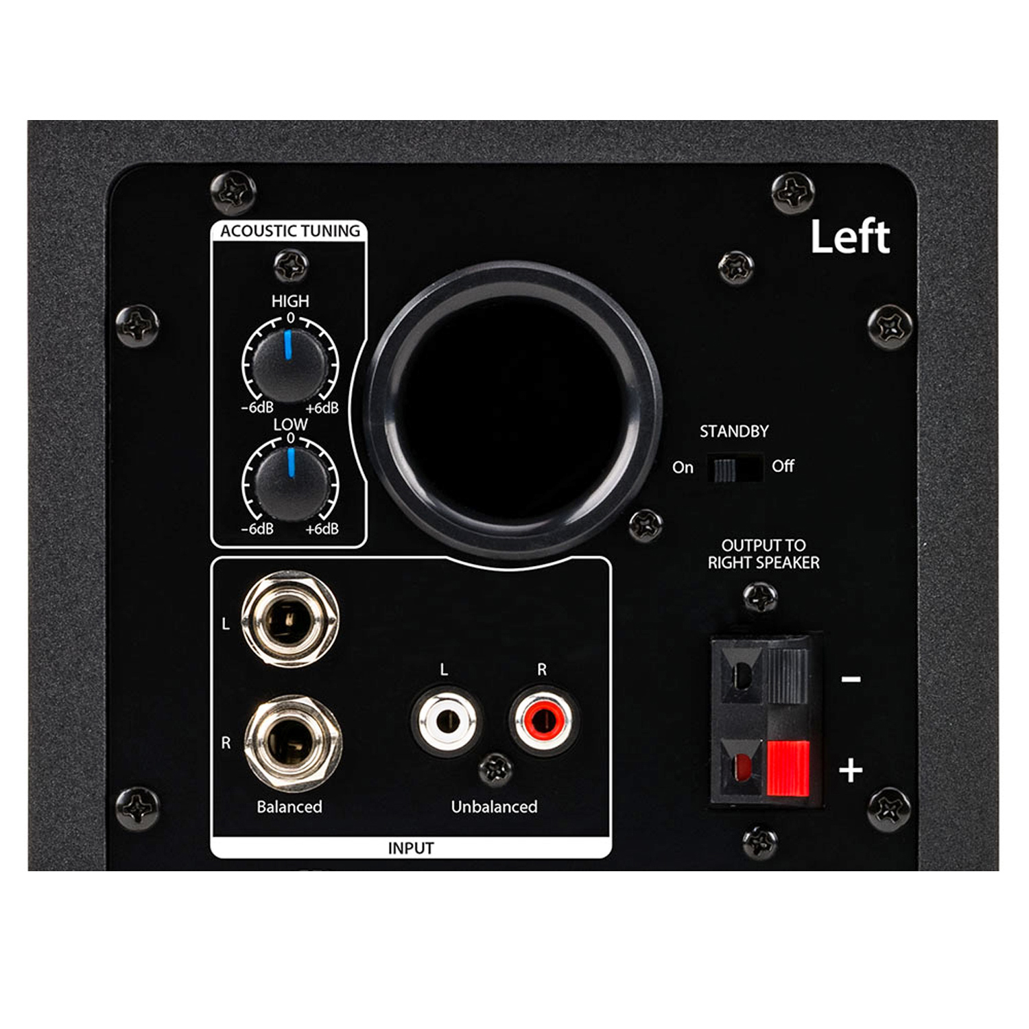 Die Boxen haben einen 3,5-Zoll Tieftöner aus gewebtem Verbundwerkstoff und einen 1-Zoll-Hochtöner mit Seidenkalotte. Als Anschlüsse stehen symmetrische 6,3-mm-Klinkeneingänge, RCA-Eingänge sowie ein 3,5mm Stereo-Aux-Eingang zum Anschluss von Mobilgeräten zur Verfügung. Zudem ist ein Kopfhörereingang mit integriertem Kopfhörerverstärker vorhanden.