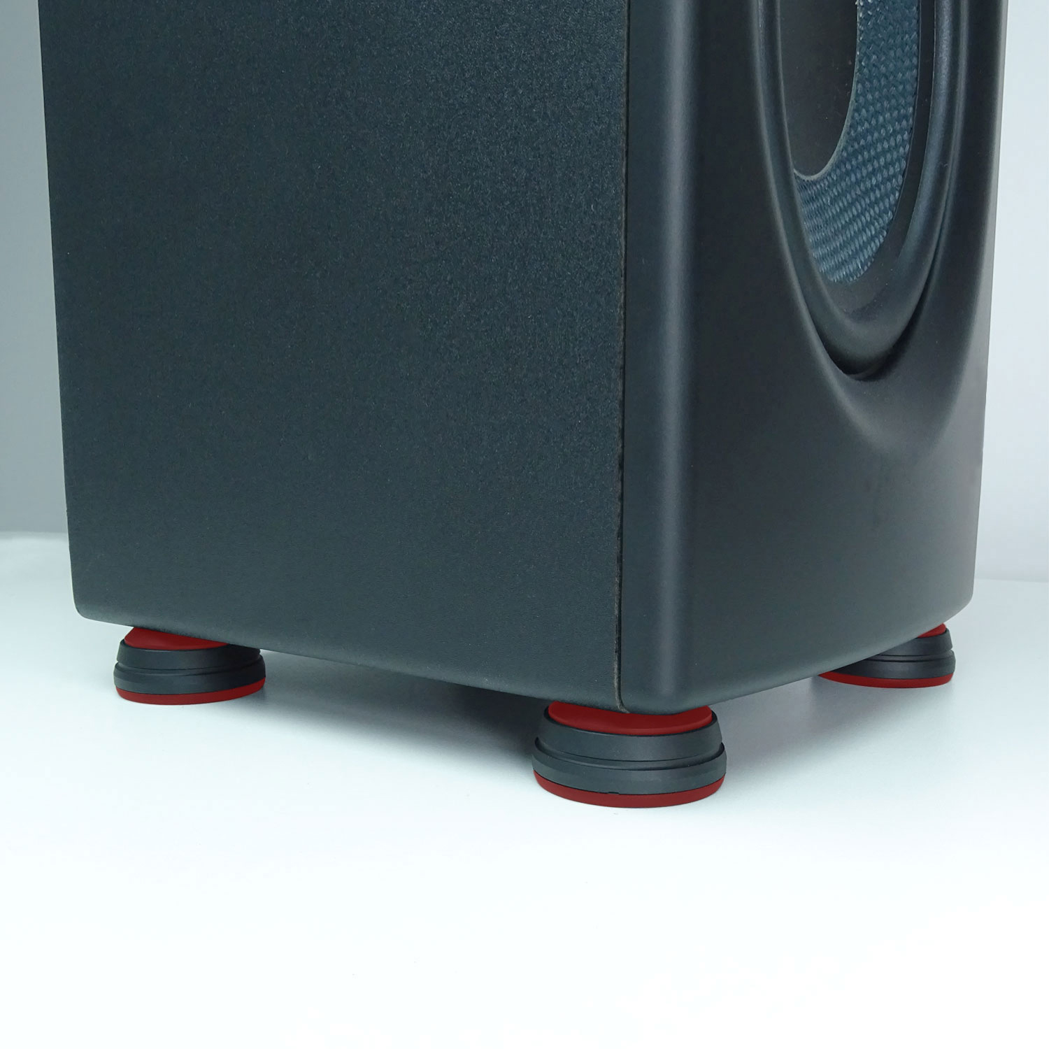 - Entkoppelt Lautsprecher-Box vom Untergrund