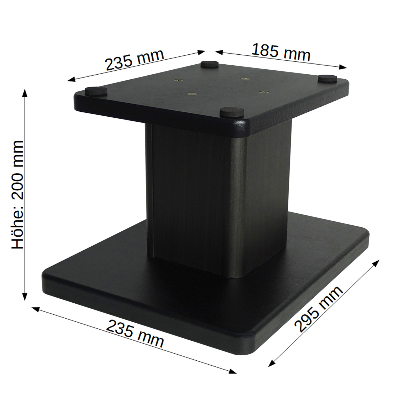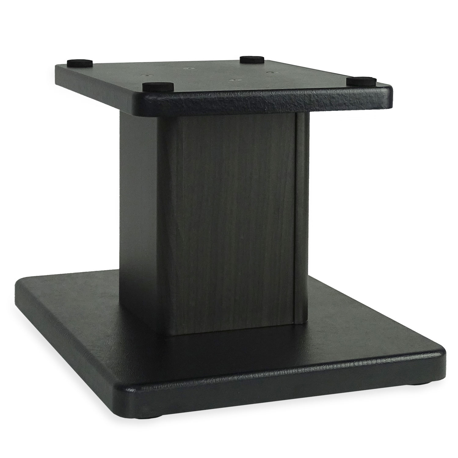 Als Material für die Ständer wurde MDF (mitteldichte Holzfaserplatte) gewählt. Dies ist ein beliebtes Material für Akustik-Elemente, da es durch seine hohe Dichte und Stabilität eine sehr gute Schallabsorption bietet. Das Gewicht von 2250g je Ständer wirkt sich dabei ebenso positiv aus wie die 20mm starke Basisplatte. Die zusätzlichen Moosgummi-Pads an Boden- und Auflageplatte der Boxenständern sorgen dazu für eine effektive Dämpfung ungewollter Vibrationen.