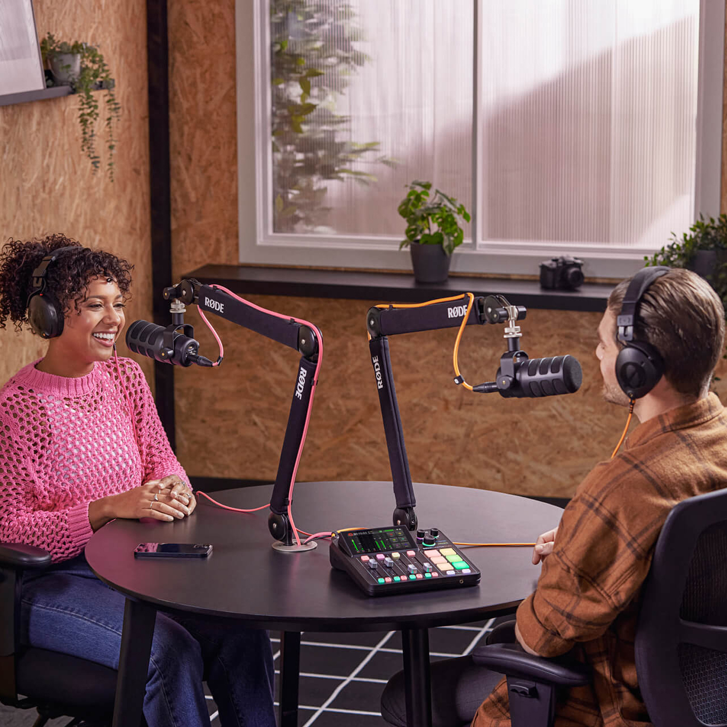 Das Gerät funktioniert als Dual USB Audio-Interface, womit gleichzeitig 2 Rechner oder Mobilgeräte verbunden werden können. Durch den integrierten Funkempfänger können drahtlose Geräte der Rode-Serie IV wie das Wireless Go II oder das Wireless ME direkt verbunden werden.