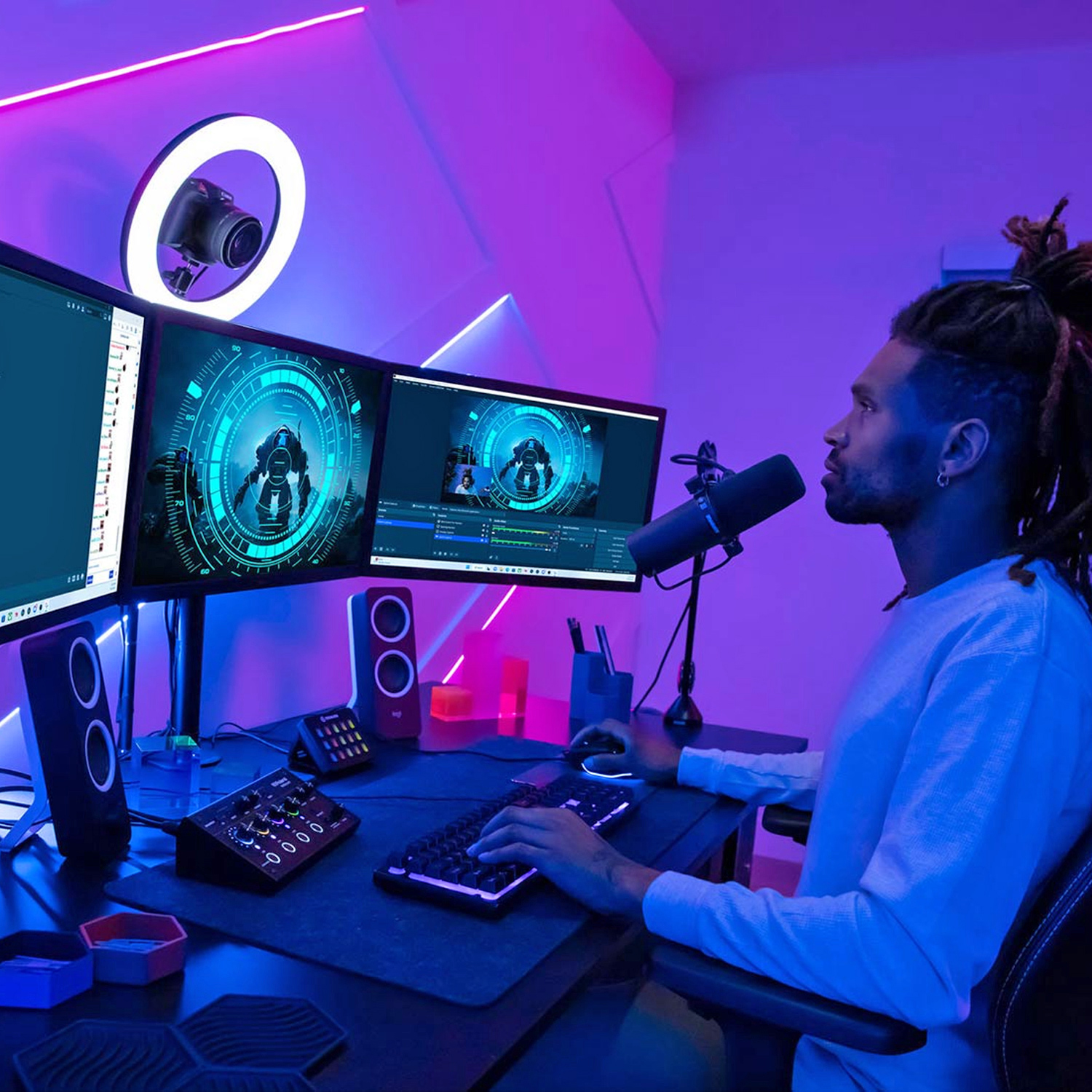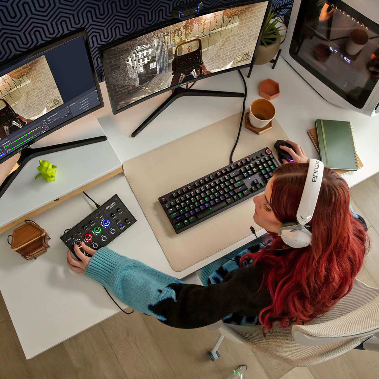 Durch den dualen Audio-Mixer können Mikrofonpegel, Chats, Gameplay-Sounds und Hintergrundmusik separat für dich und das Publikum abgestimmt werden. So kann sowohl ein Mix erstellt werden der auf die persönlichen Bedürfnisse zugeschnitten ist als auch ein separater Stream-Mix für die Bedürfnisse des Publikums.