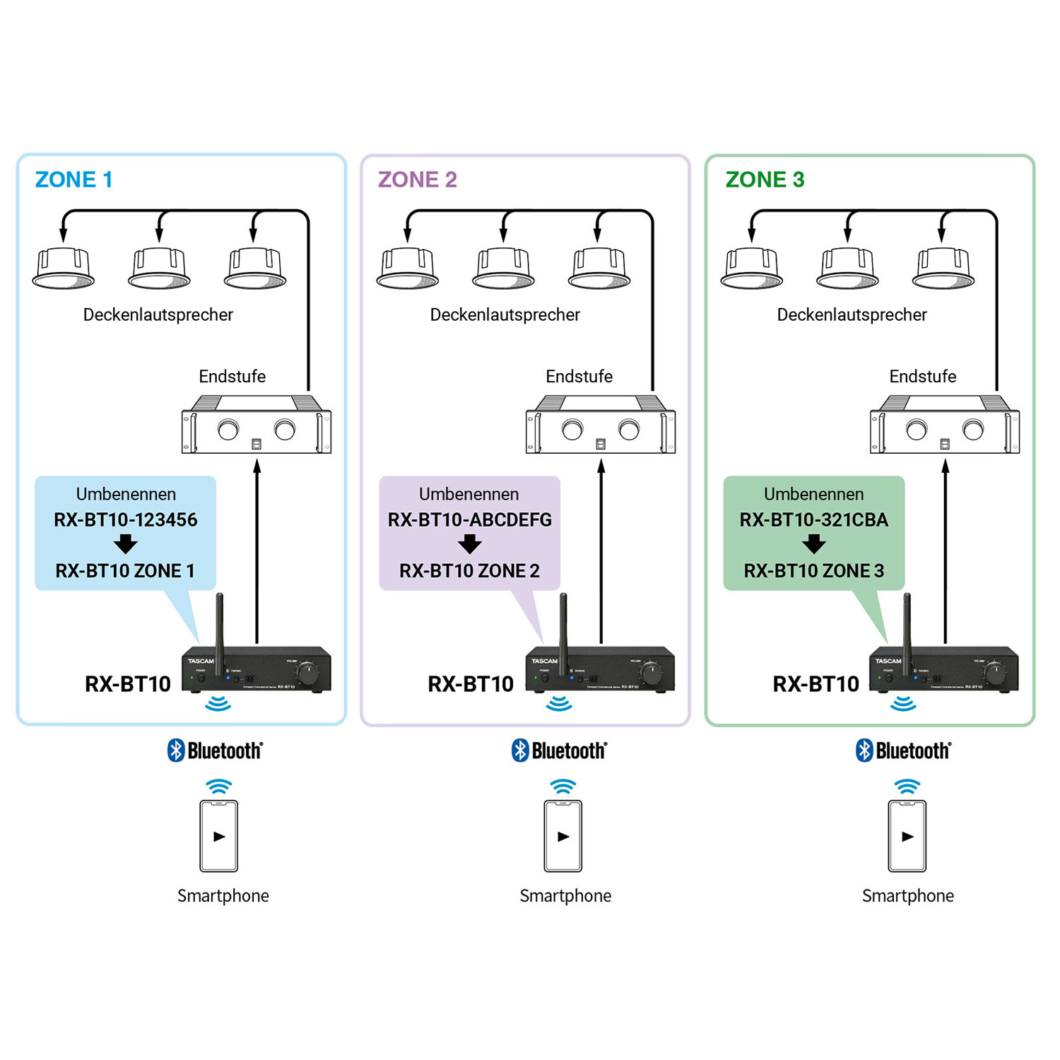 eindeutige Bluetooth-ID jedes Geräts, die den Einsatz mehrerer RX-BT10 in derselben Umgebung ohne Störungen ermöglicht.