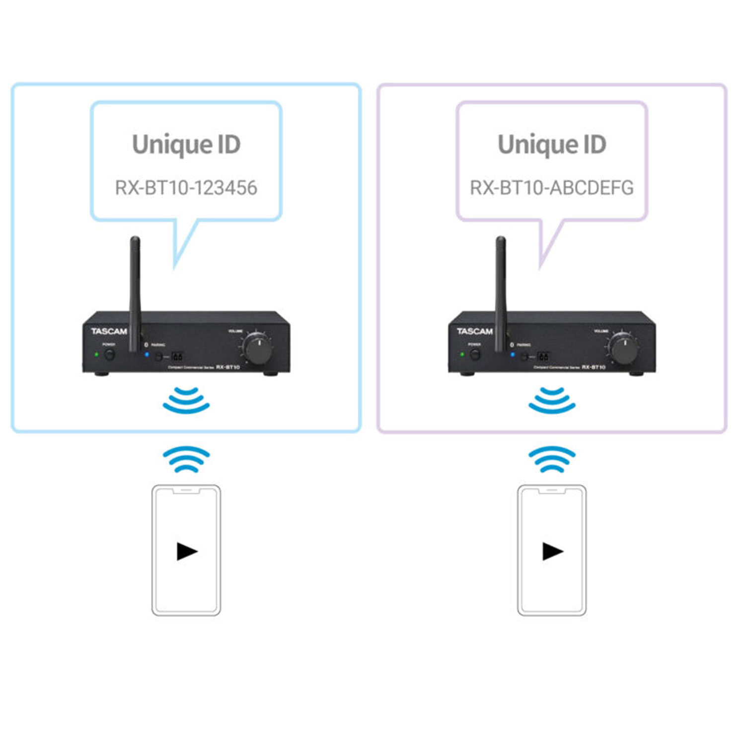 eindeutige Bluetooth-ID jedes Geräts, die den Einsatz mehrerer RX-BT10 in derselben Umgebung ohne Störungen ermöglicht.