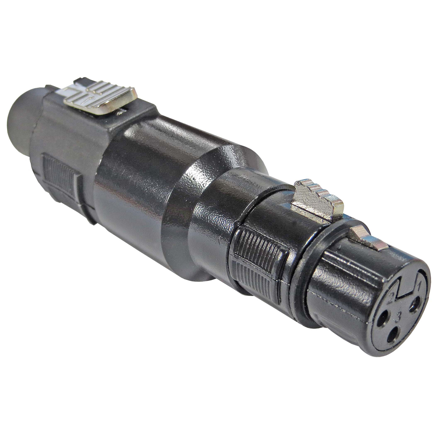 Der ADA038 ist ein Audio-Adapter der mit einer 3-poligen XLR Buchse und einem Speakon-Stecker ausgestattet ist. Dieser Adapter ermöglicht das Anschlissen einer Box mit Speakon-Anschluss mit einem XLR Kabel (nicht im Lieferumfang enthalten).