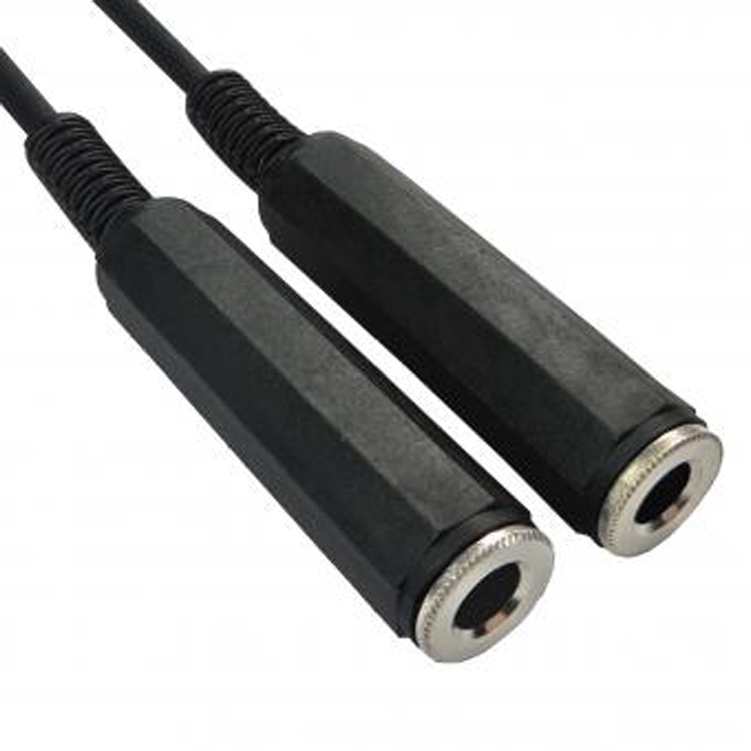 Das Modell YC006 ist ein Y-Adapterkabel welches das Signal von einem 3,5mm Mini-Klinkenstecker auf zwei 6,35mm Buchsen splittet. Die Signalübertragung verläuft hierbei in Stereo.