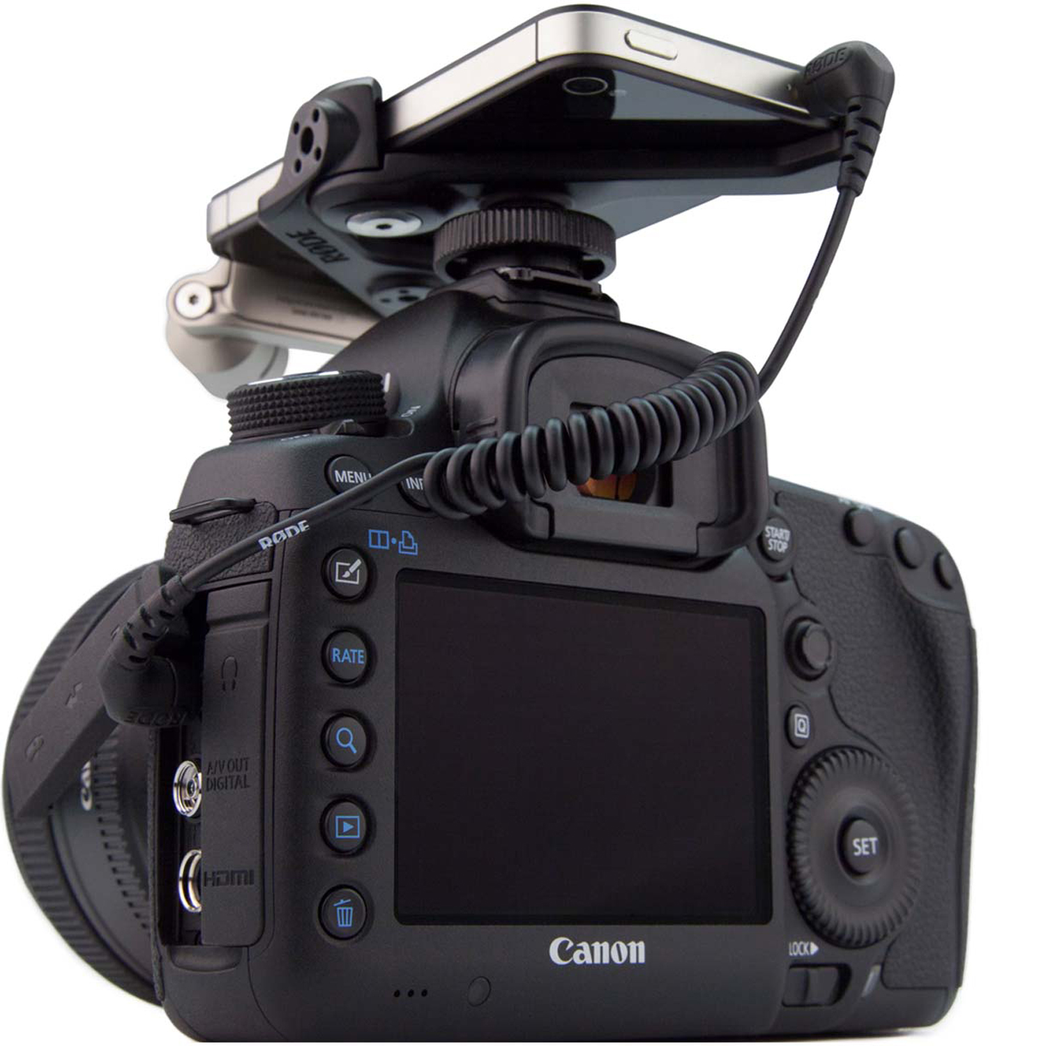 Das RODE-Verbindungskabel SC2 ermöglicht es bei Videoaufnahmen, die Audiospur einer DSLR-Kamera mit dem Audiosignal des RODE iXY zu belegen ganz simpel vom Kopfhörer-Ausgang des iPhones aus. Auf dem Speichermedium der Kamera wird so der selbe Ton aufgezeichnet.