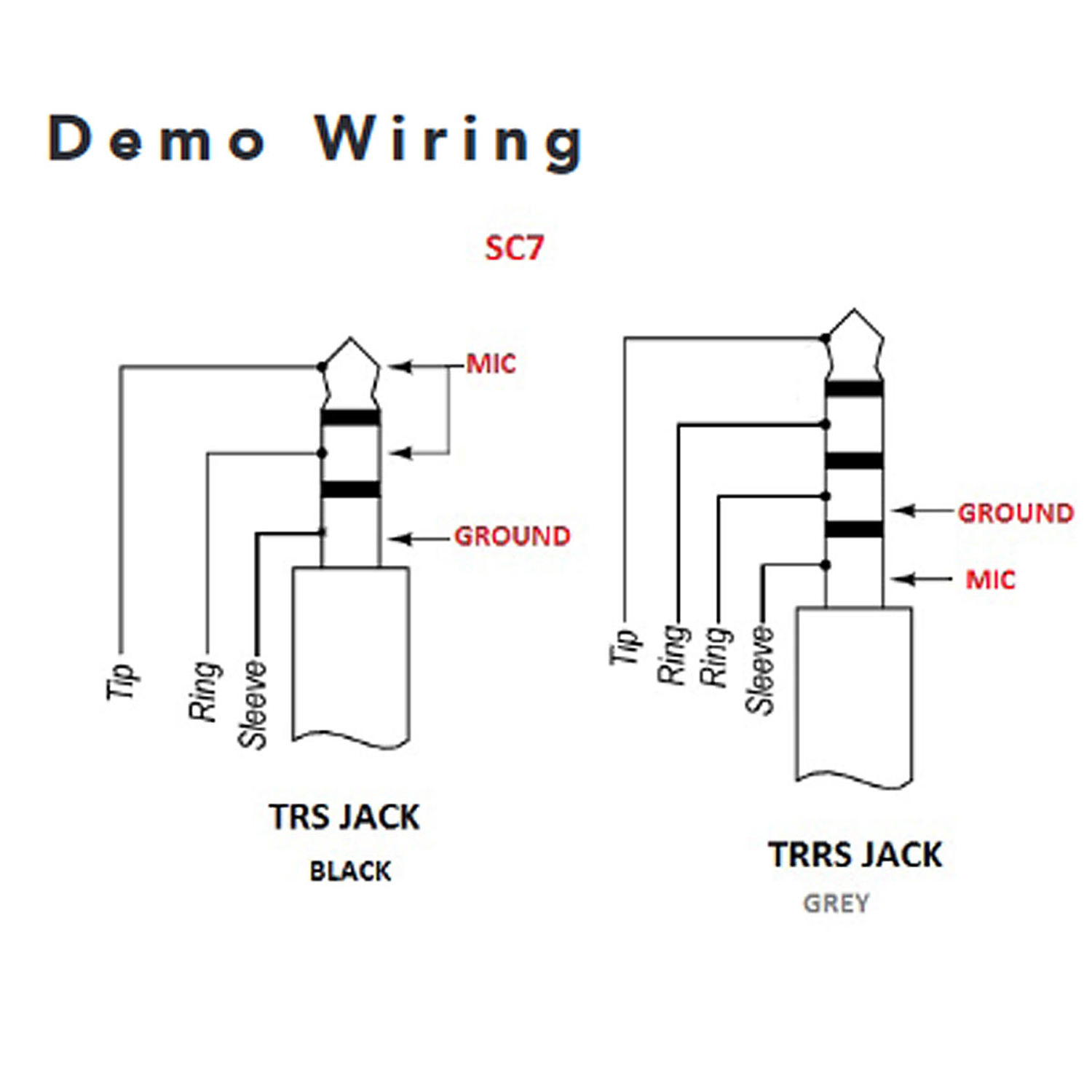 Die vergoldeten Kontakte sind farblich markiert - Grau zeigt den TRRS Ausgang an der an Ihr iPhone/iPad angeschlossen wird, schwarz den TRS-Stecker für den Anschluss des Mikrofons. Auch das Rode Wireless GO System (nicht im Lieferumfang enthalten) kann mit dem Rode SC7 Kabel an einem iPhone/iPad betrieben werden.
