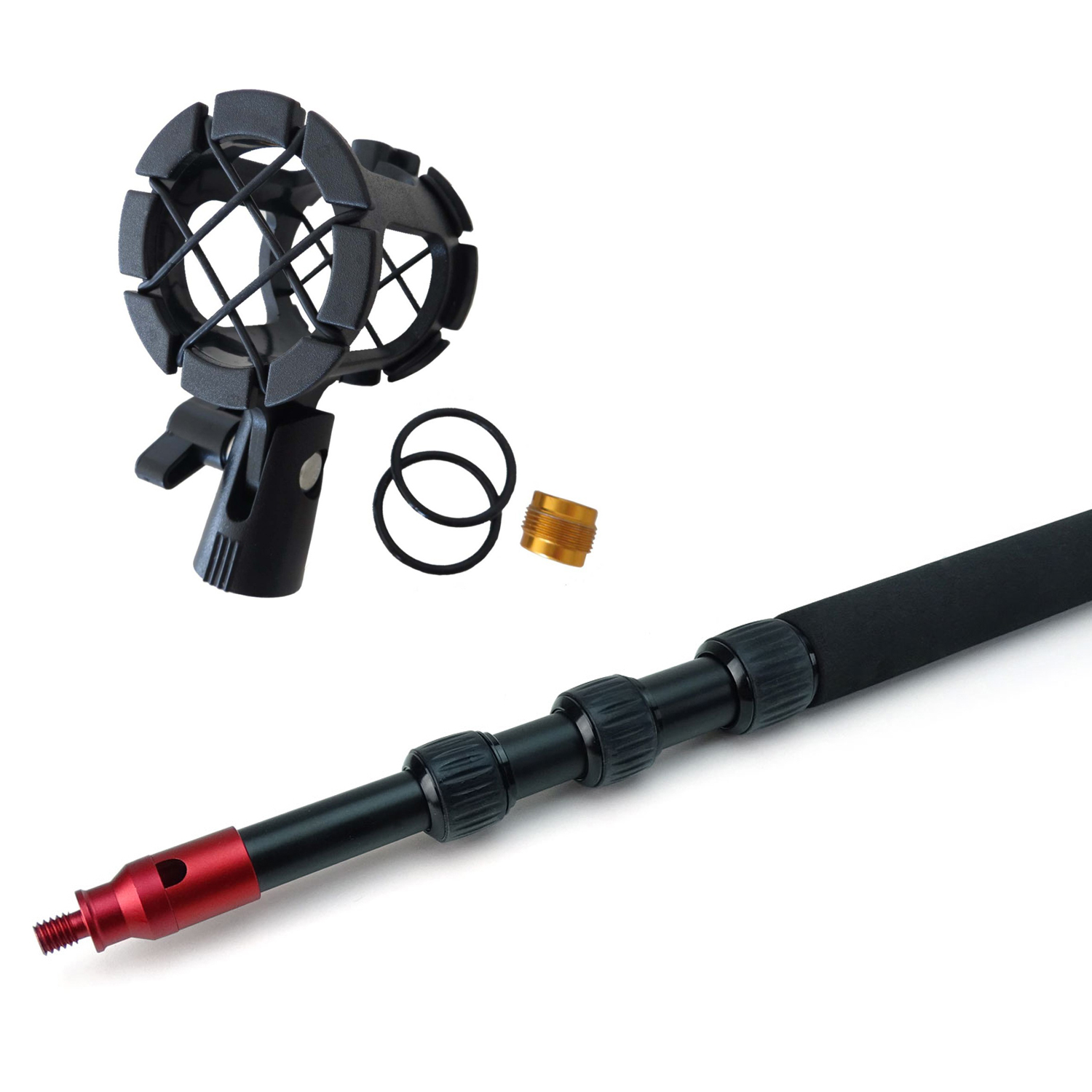 alle gängigen Videomikrofone und Mikrofonhalterungen befestigt werden. Am unteren Ende der Tonangel befindet sich ebenso ein 3/8 Zoll Gewinde - hiermit können